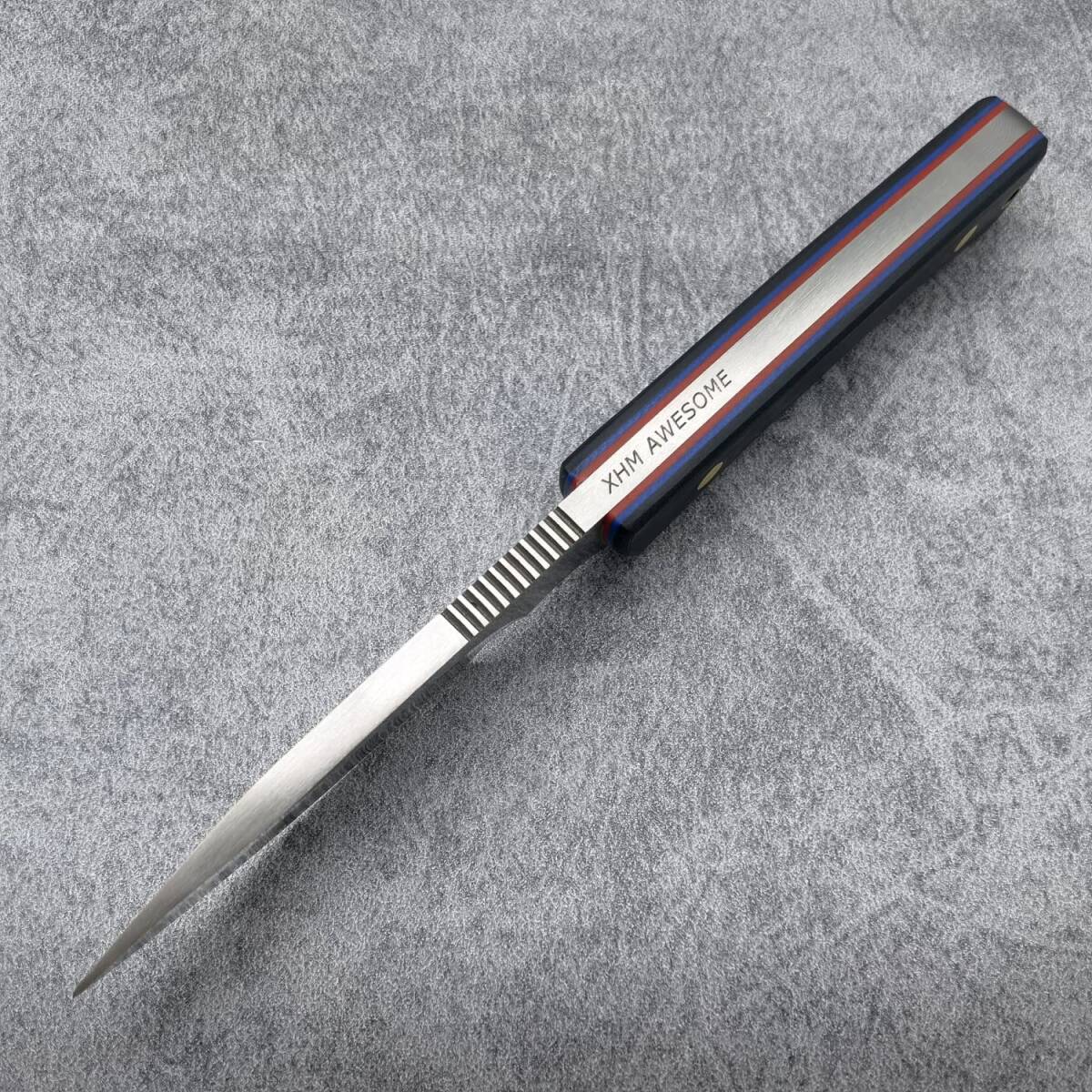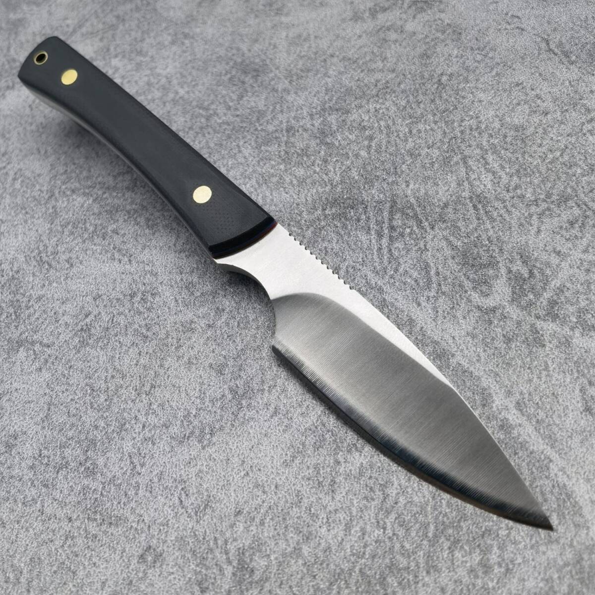 【フルタングの構造】7Cr13Movスチールクリップポイントブレード、フルタング、優れたバランス、箱から出して非常に鋭い。5 mm厚のブレードで、頑丈で実用的です。混色G 10滑り止めハンドル、優雅、低調。