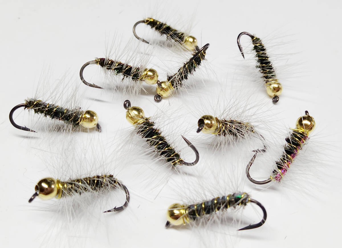 ビーズヘッド、ピーコックニンフ、フラッシャブ― #10・10本 完成品フライ