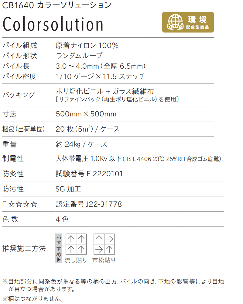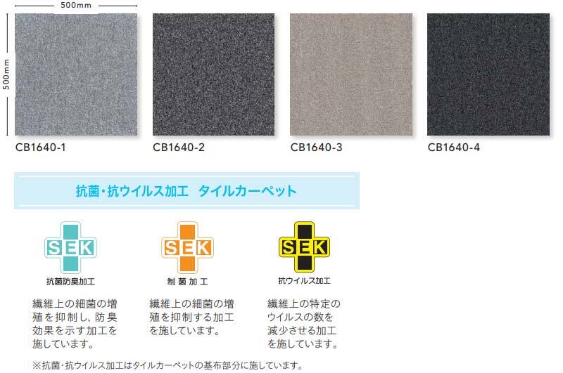 SEKマークの安全性基準の抗菌・抗ウイルス加工 カラーバンク カラーソリューション CB1640 全厚6.5mm 寸法50×50cm 20枚入り/ケース