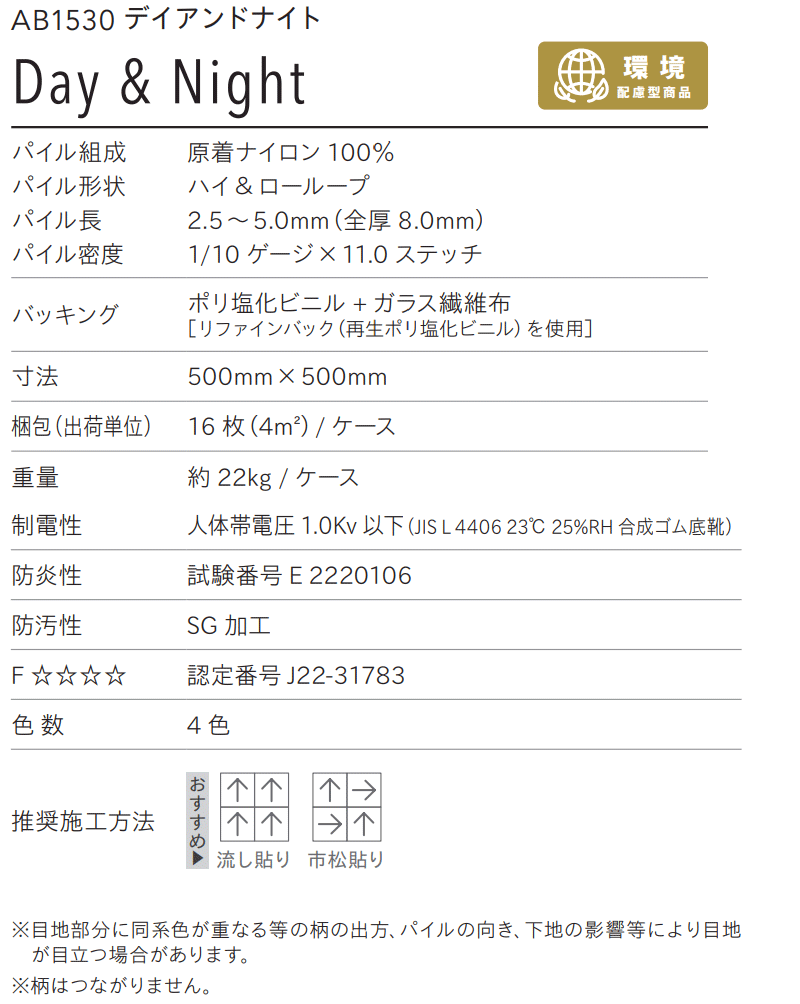 川島織物セルコン 業務用 タイルカーペット アートバンク デイアンドナイト AB1530 全厚8mm 寸法50×50cm 16枚入り/ケース