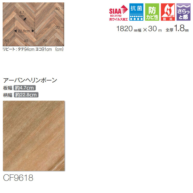 床シート 送料無料 クッションフロア 撥水、抗菌、防カビ、さらっと感 シート東リのCFシート-H CF9618(長さ1m)