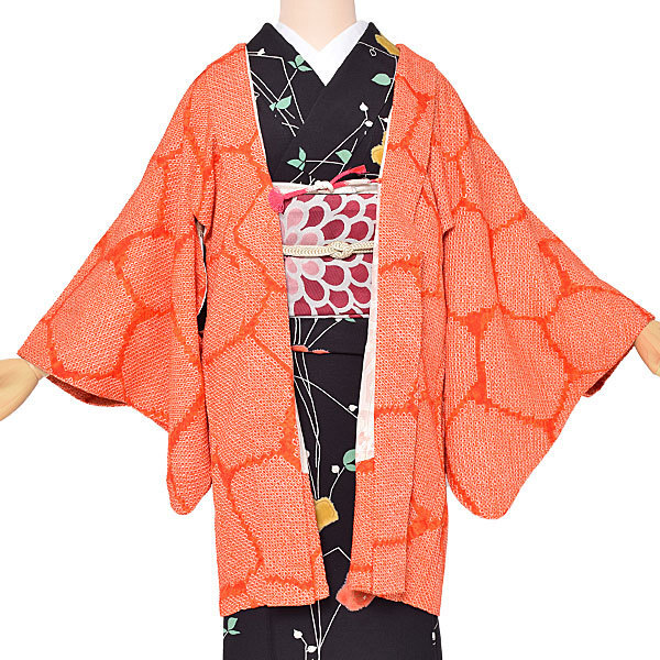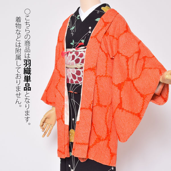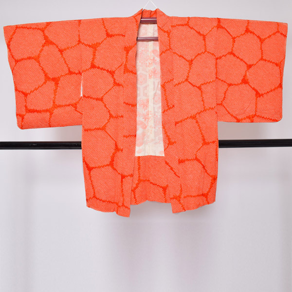 (Prices down3)(中古品)羽織 「朱色 亀甲文 鹿の子絞り」 正絹 総絞り 羽織り (メール便不可)<T>