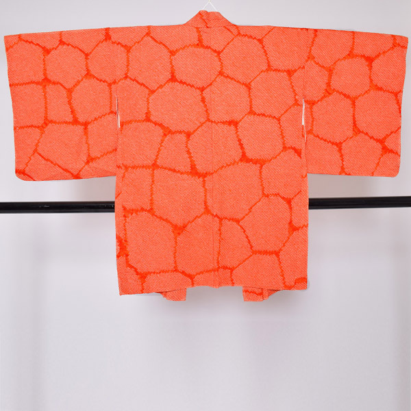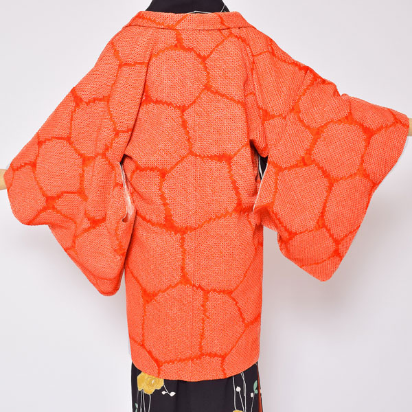 【中古品】羽織 「朱色 亀甲文 鹿の子絞り」 正絹 総絞り 羽織り 【メール便不可】