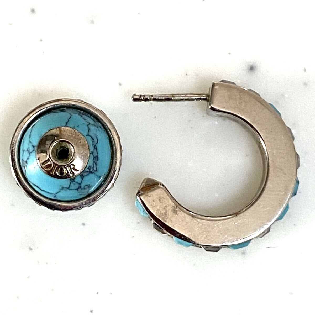 クリスチャンディオールの、ターコイズカラーストーンが印象的な片耳用フープピアスです。
