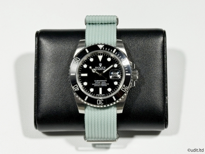 こちらは、リブ編み特有の美しい発色と優れた耐久性を兼ね備えた高品質NATOストラップです。