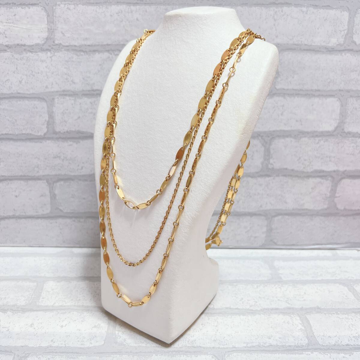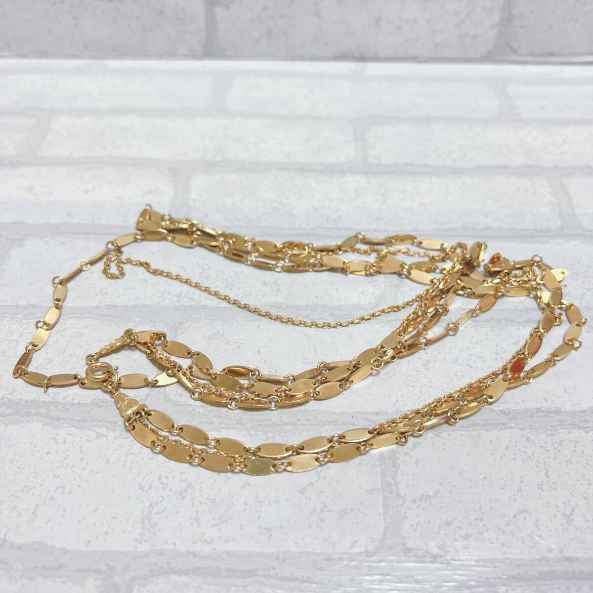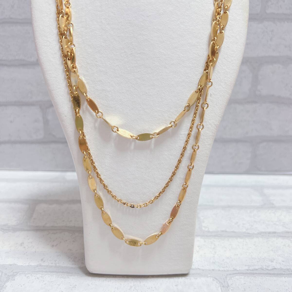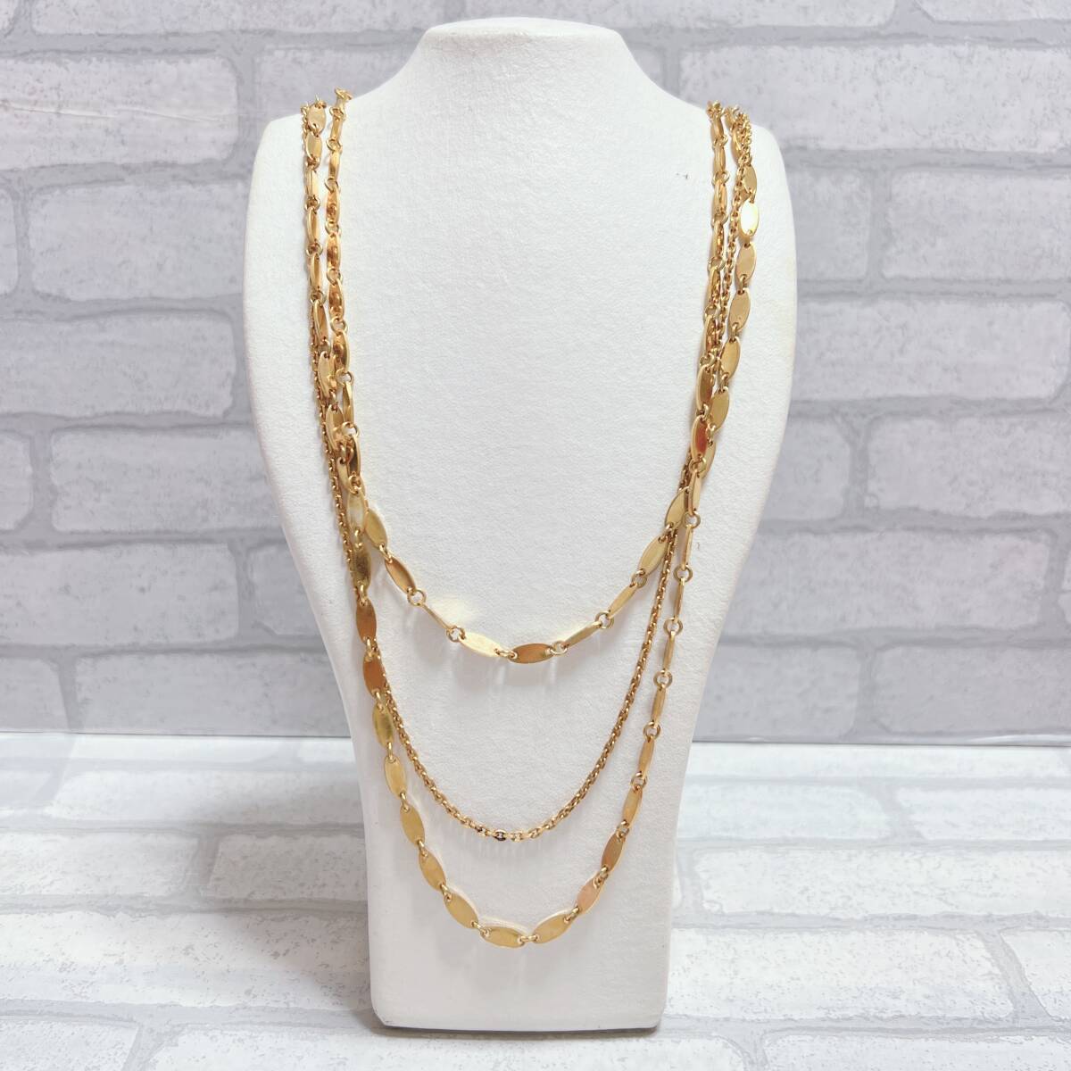 【長さ】 約68 【カラー】 ゴールド 【付属品】 なし 【刻印】 なし ご質問等お気軽お待ちしております。 発送はお振込み確認後、即日発送、翌日発送にて ご対応させていただきます。 *状態は画像参照をお願いいたします。 *安価提供の為 石、材質等は分かりかねます。 アンティーク ヴィンテージ ネックレス gold ゴールド チェーン 3連 デザイン シンプル アンティーク ヴィンテージ EL-0784 | |