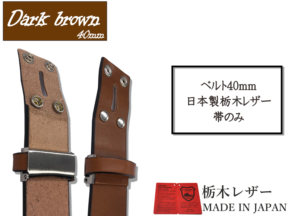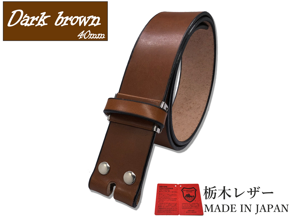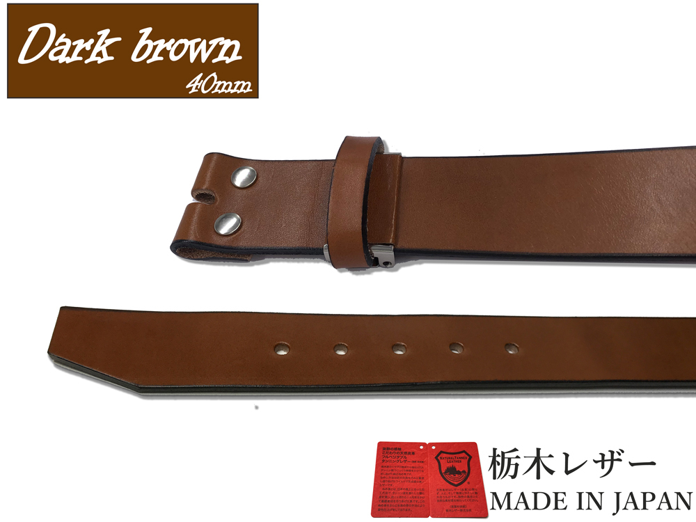 新品 栃木レザー カジュアルベルト Mサイズ メンズ 無地 帯のみ 本革 交換用 取り換え 牛革 40mm 茶色 チョコ 銀ホック W041DBS