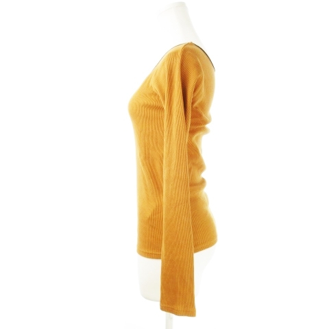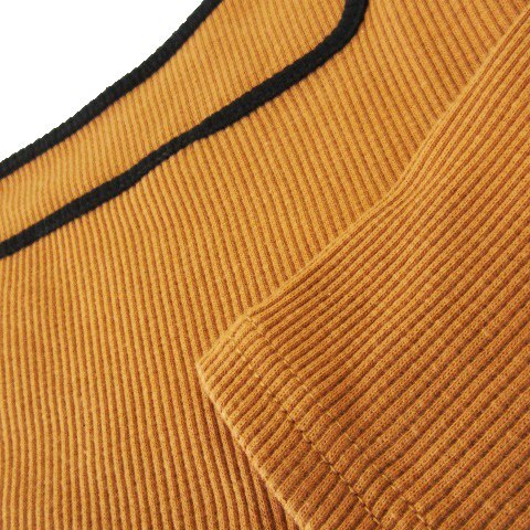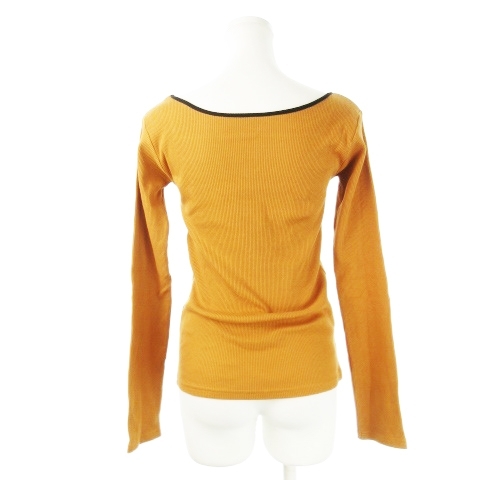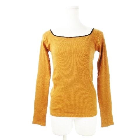 ローリーズファーム LOWRYS FARM カットソー リブ スクエアネック 長袖 ストレッチ コットン パイピング ライン F オレンジブラウン /CK10 レディース