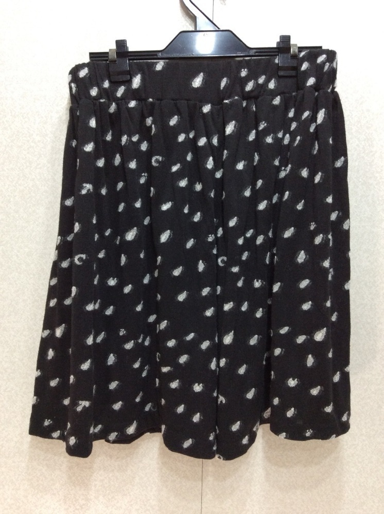 | 管理番号:40^122398 ツモリチサト 黒×白ドットなど柄ウエストゴムスカート 表示サイズ:2 実寸(参考)