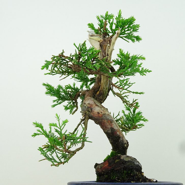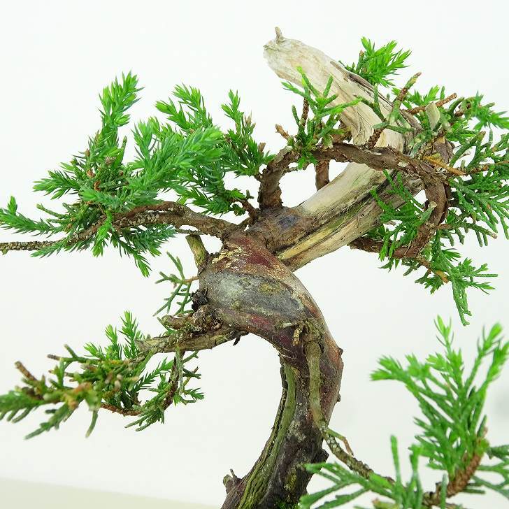 ■植物ですので撮影時期や季節によって剪定などの手入れにより写真から変化がございます。撮影日をご確認のうえ、ご注文ください。 ■年に一度、冬頃にジン・シャリのお手入れをおこなっています。薬品の関係で黄色く変色しているようにみえる場合がありますが徐々に薄れていくので問題はありません。 【真柏盆栽】 シンパクの1番の特徴と言えば、短く締った紐状の葉と、わずかな水吸いでも生き抜くことができる強靱な幹枝です。自然界では積雪や強風などで押しつぶされ木部が露出し、朽ちて白骨化したものが見られます。枝の一部が白骨化したものを神(ジン)、幹の場合は舎利(シャリ)といいます。 |