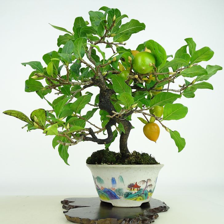 ■植物ですので撮影時期や季節によって剪定などの手入れにより写真から変化がございます。撮影日をご確認のうえ、ご注文ください。 ■翌年の実付きをよくするために葉が落ちた後の11月末~12月にかけて摘果しています。お届けの商品にはロウヤガキの実がない場合がございます。 ■老爺柿の種類は沢山あり、品種の記載がない商品は仕入れの時点で確認ができておりませんので、その旨ご了承のほどお願いいたします。 【老爺柿盆栽】 開花時期は4~5月頃に花を咲かせます。雌雄異株で、実を成らすためには雌木と雄木が必要になります。小さな実が成る渋柿で、実が枝にぶら下がって成る特徴があります。老爺柿は沢山の品種があり、実の形状や色も様々で、丸い形から細長くとがったもの、大きさも大小があり、色合いも赤みを帯びた橙色から黄色、朱赤など豊富にあります。 |