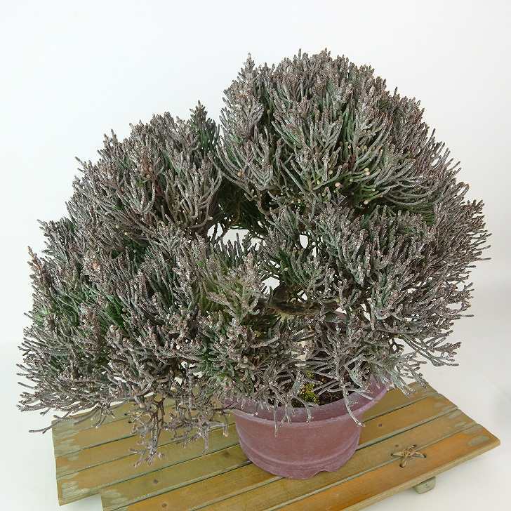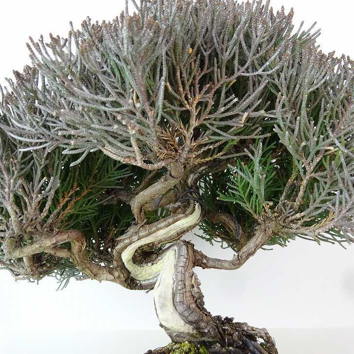 ■植物ですので撮影時期や季節によって剪定などの手入れにより写真から変化がございます。撮影日をご確認のうえ、ご注文ください。 ■年に一度、冬頃にジン・シャリのお手入れをおこなっています。薬品の関係で黄色く変色しているようにみえる場合がありますが徐々に薄れていくので問題はありません。 【真柏盆栽】 シンパクの1番の特徴と言えば、短く締った紐状の葉と、わずかな水吸いでも生き抜くことができる強靱な幹枝です。自然界では積雪や強風などで押しつぶされ木部が露出し、朽ちて白骨化したものが見られます。枝の一部が白骨化したものを神(ジン)、幹の場合は舎利(シャリ)といいます。 |