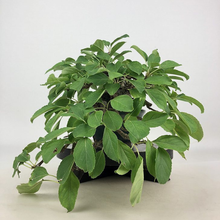 | ■植物ですので撮影時期や季節によって剪定などの手入れにより写真から変化がございます。撮影日をご確認のうえ、ご注文ください。 ■翌年の実付きをよくするために観賞後の11月末~12月にかけて摘果しています。お届けの商品にはリンゴの実がない場合がございます。 【姫リンゴ盆栽】 開花時期は4月~6月頃にかけて、はじめは薄いピンク色で、満開時には白くなる花を咲かせます。 秋には、赤や黄色のリンゴに似た小さな果実を付けます。一株では実の成りが少なくなるため、多数の実を楽しむには複数の苗木やカイドウと一緒に植え、人工的に受粉させると実の成りがよくなります。 |