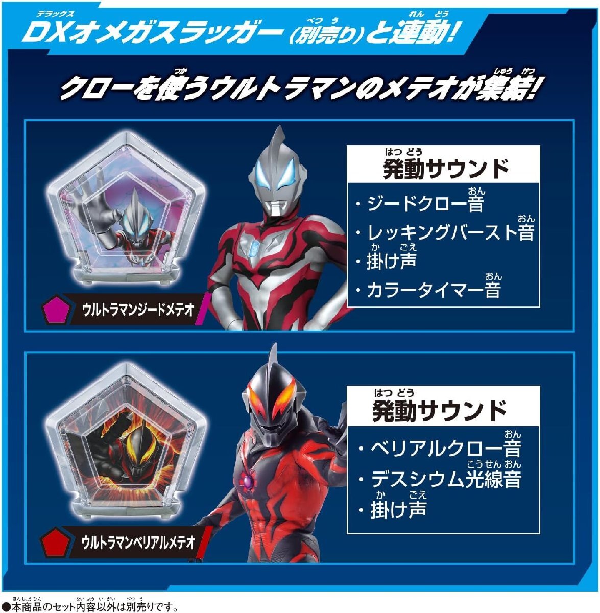 ウルトラメテオは、別売りの「変身アイテム DXオメガスラッガー」と連動!固有のサウンドが楽しめます。