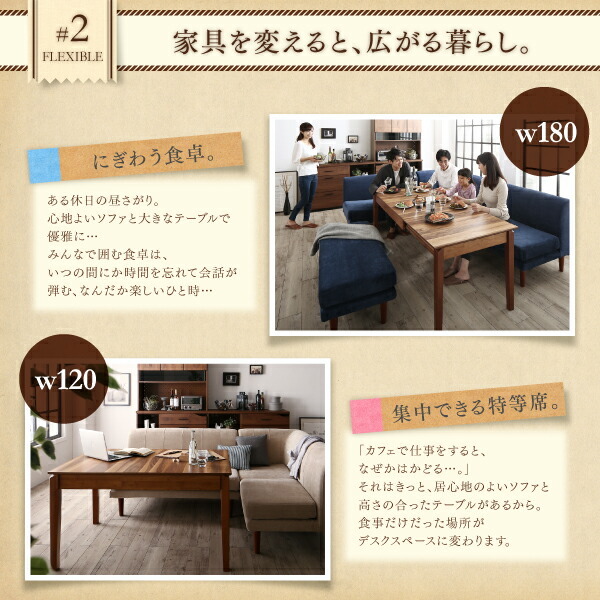 ダイニングセット ソファ 伸縮 伸縮テーブル 高さ調節 伸長 エクステンション 6人 おしゃれ 北欧 幅120-180