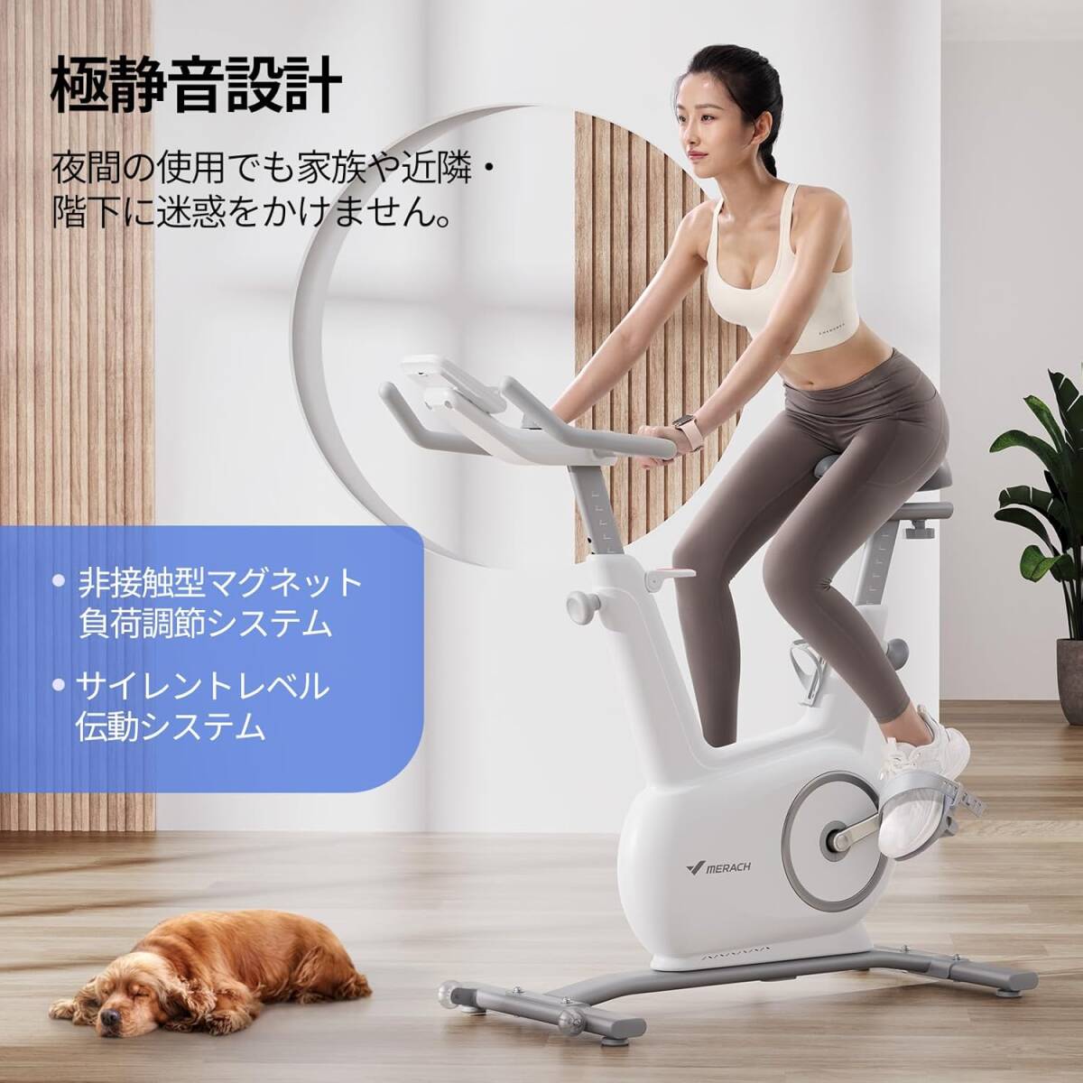 フィットネスバイク MERACH(メリック) フィットネスバイク アプリ連動可能 14段階負荷調整 スピンバイク 家庭用 極静音 室内