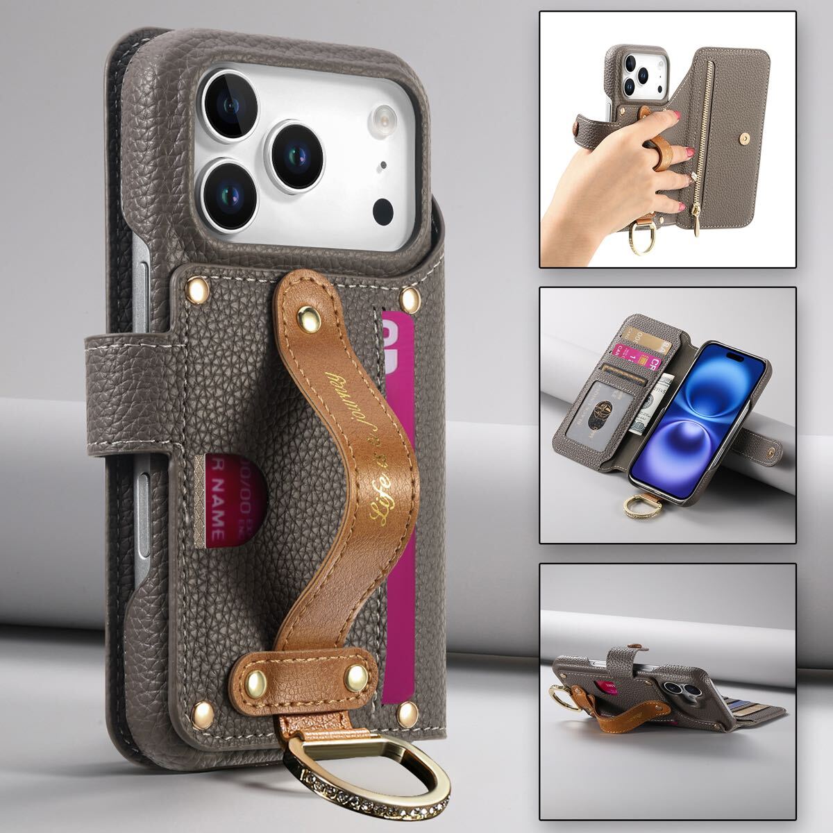 グレー iPhone17 pro Max用ケース 手帳型 RFID磁気防止 スキミング防止 カードポケット 落ち着いた色 横置き機能 高級PU 気質 全面保護
