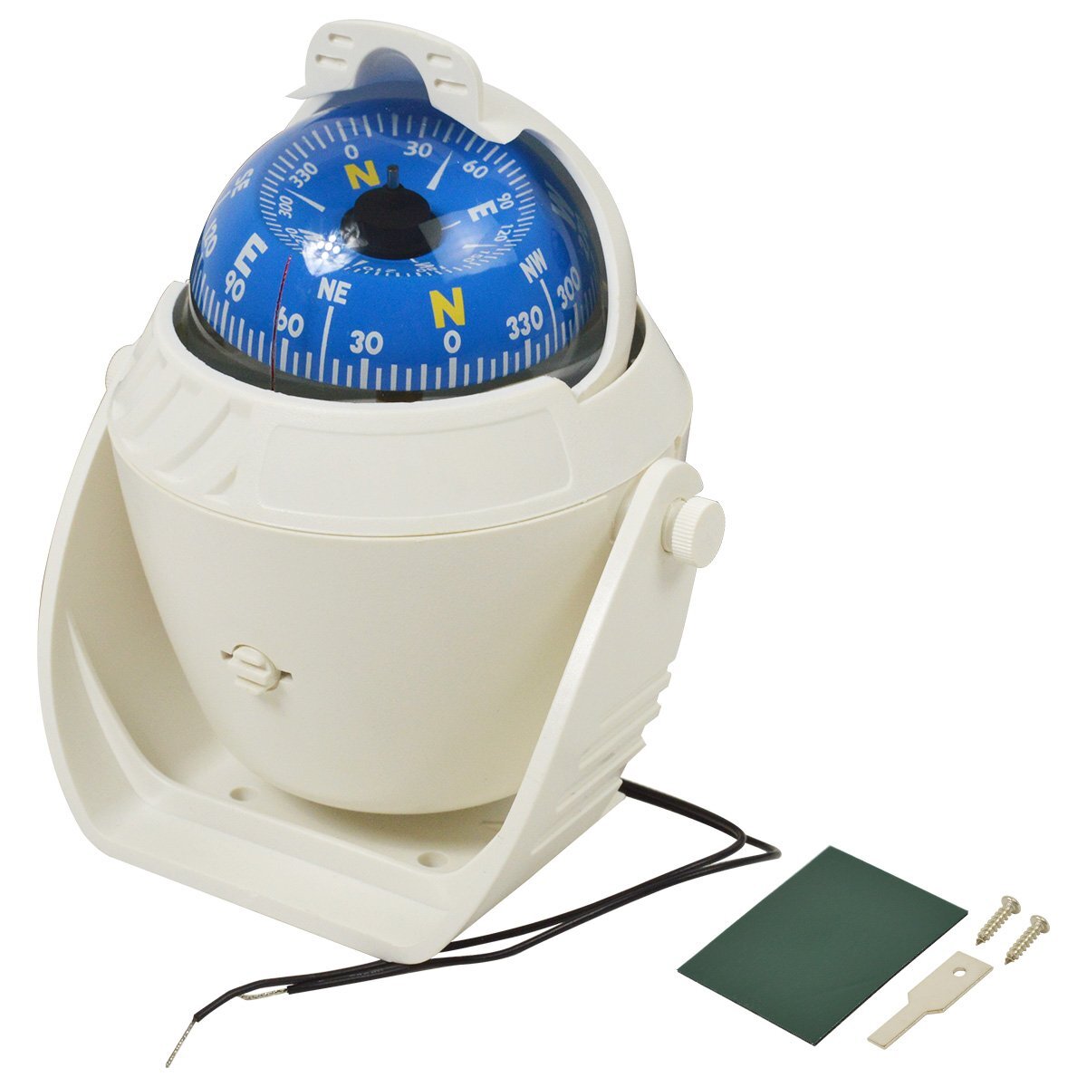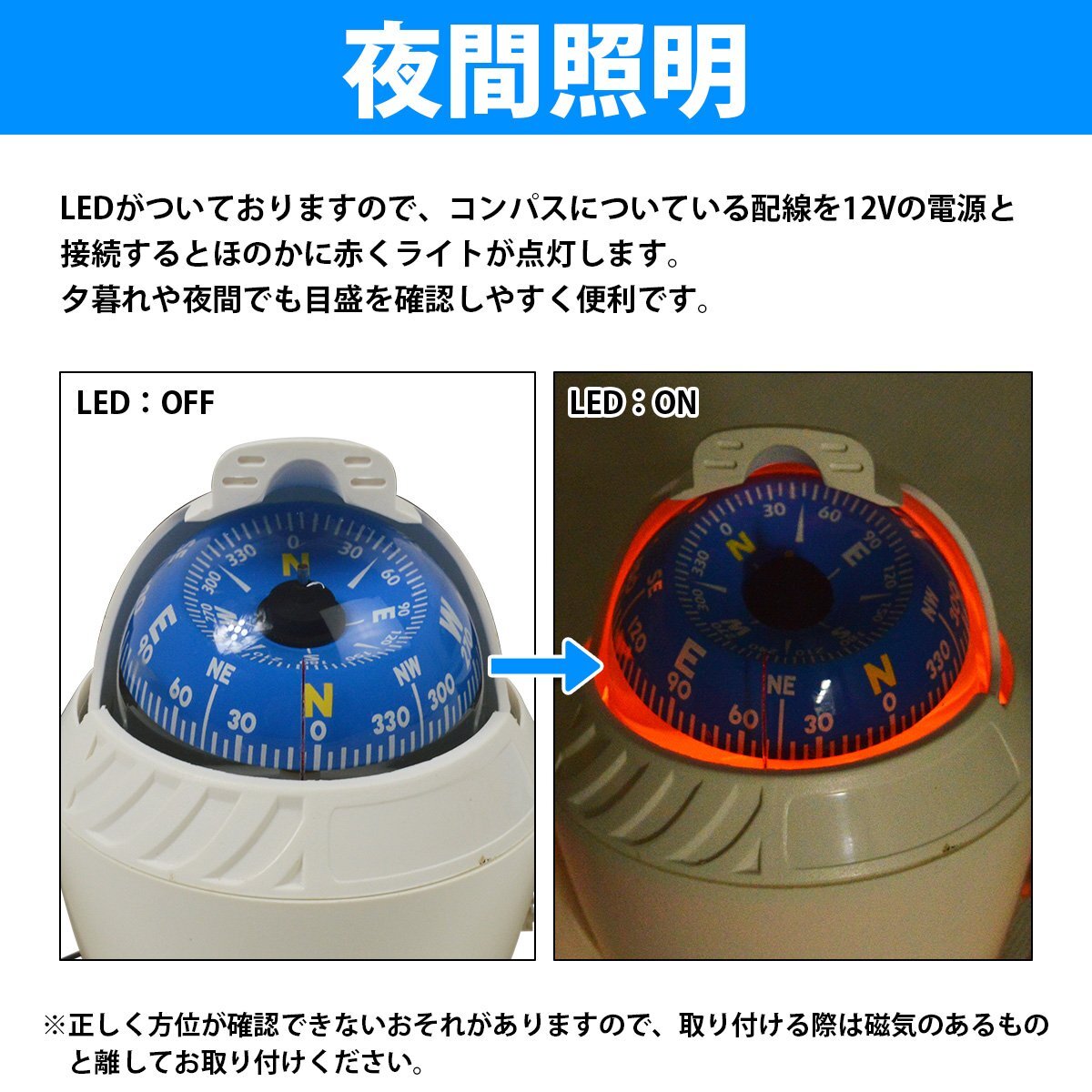 【新品即納】LEDライト 照明付き マリンコンパス 船舶 船 漁船 車 ボート ヨット 12V ホワイト 白 方位磁石 角度調整 コンパス