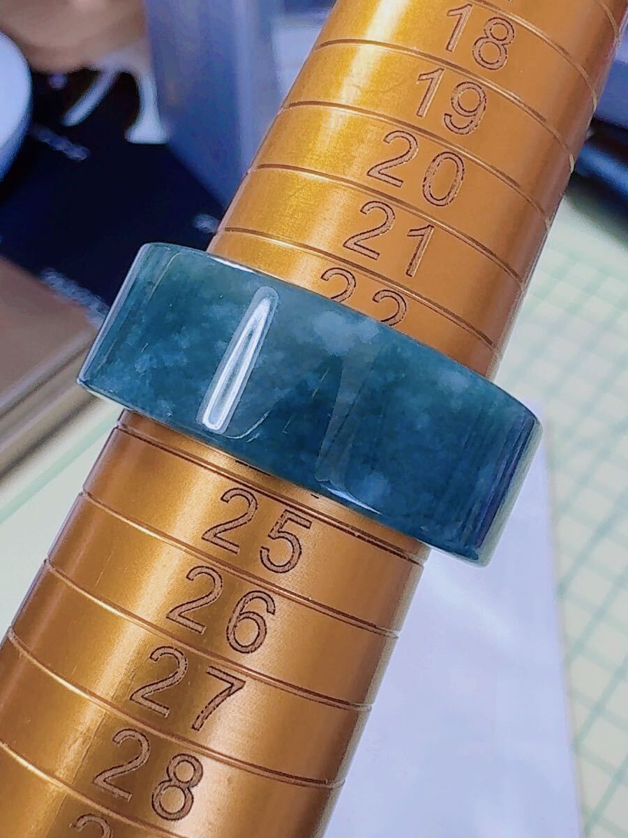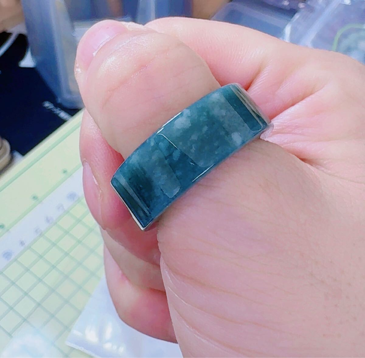 R2-01940天然本翡翠《本物保証》 藍水翡翠 指輪約23~24号 一点物 希少 縁起物 お守り 魔除け 昇進 金運財運 幸運幸福 パワーストーン