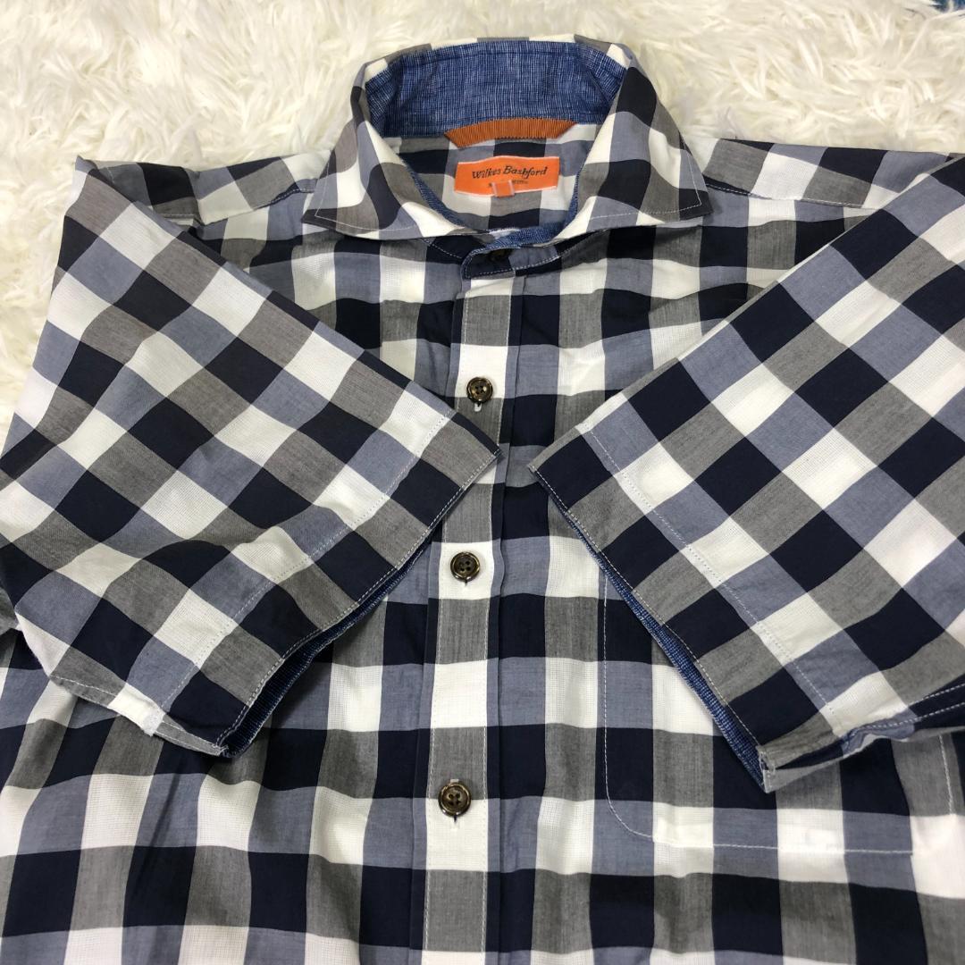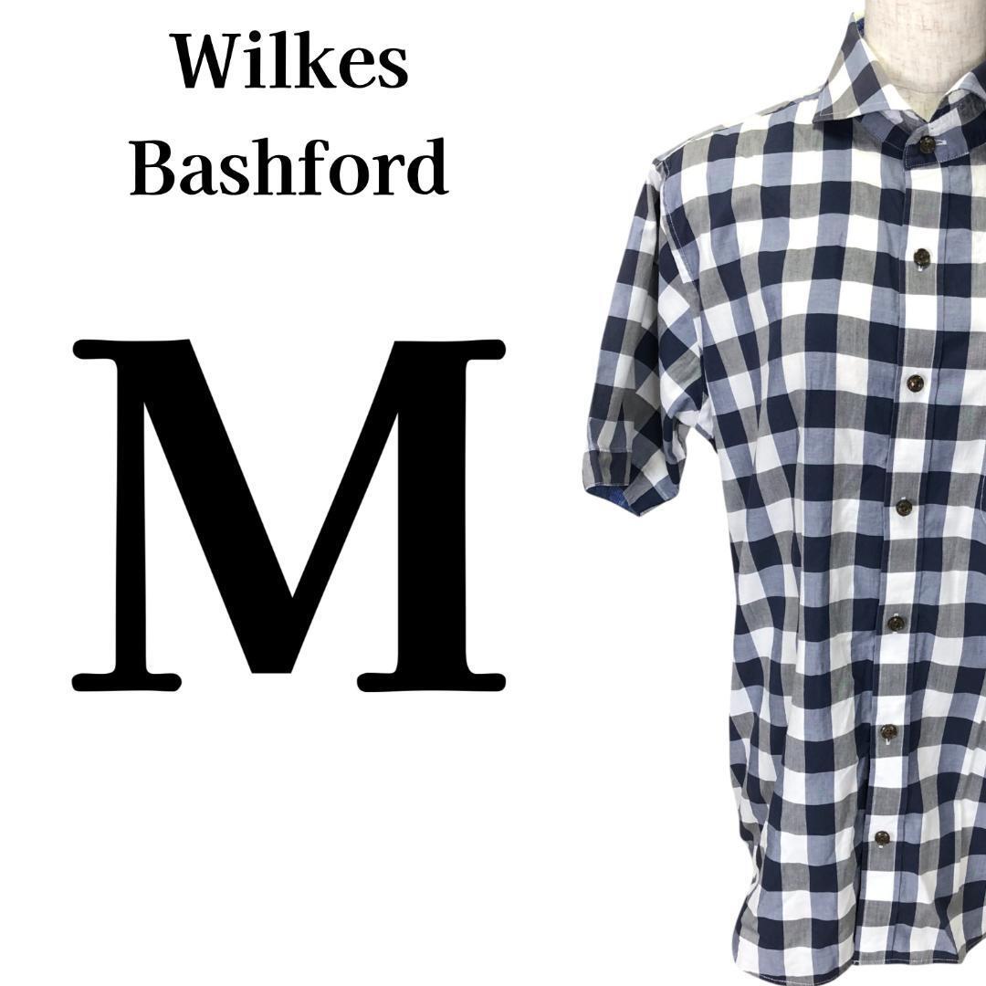 【メンズ美品】ウィルクス・バシュフォード タカキュー チェック柄 半袖シャツ M