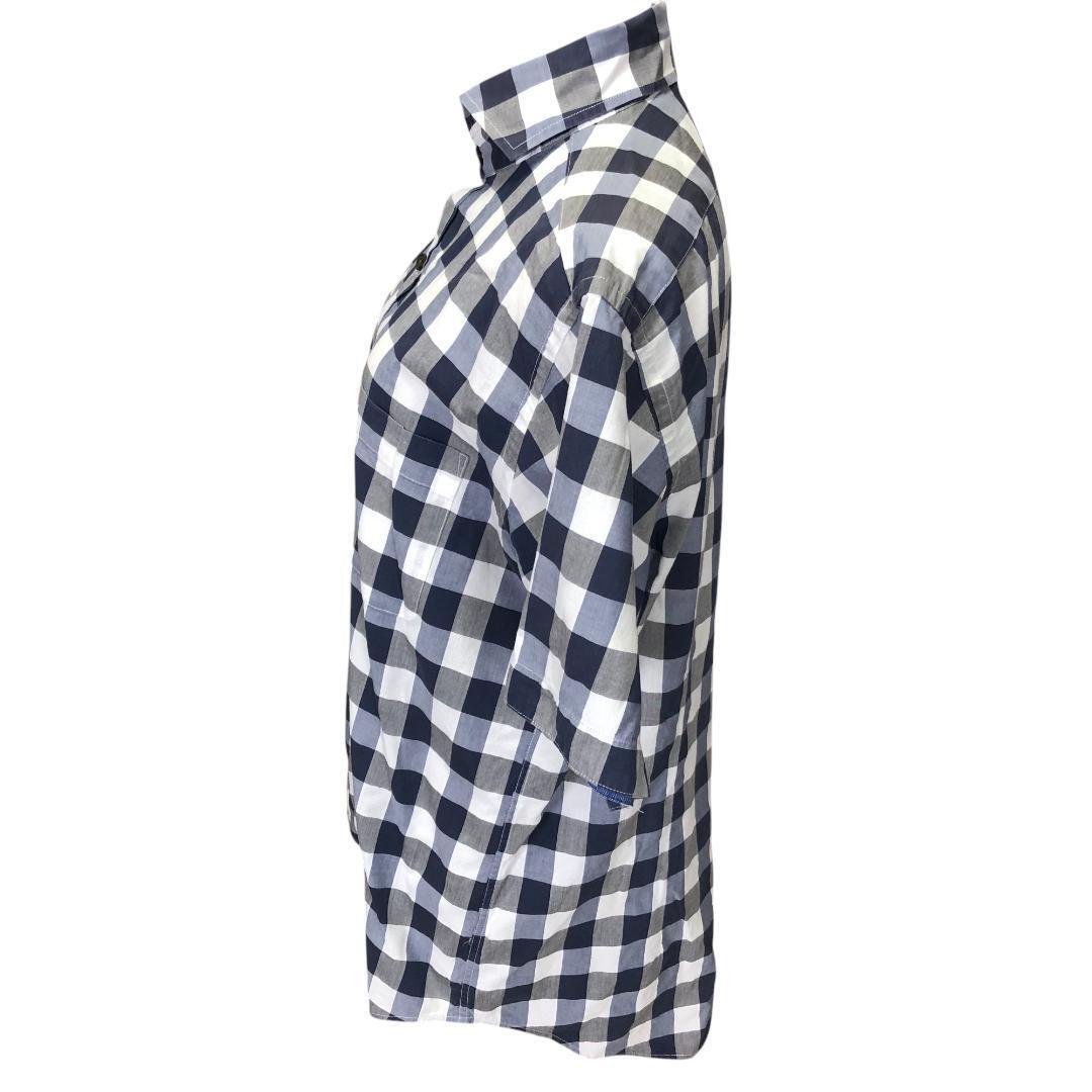 白・黒・グレー チェック柄 綿100%で快適な着心地です。左胸にはポケットが付いています。
