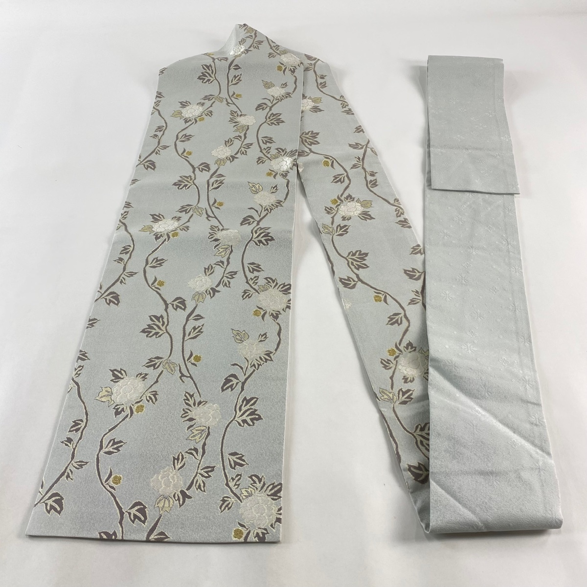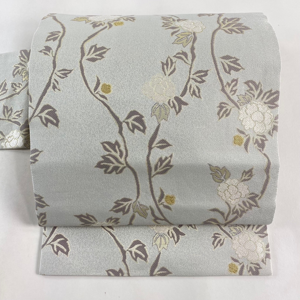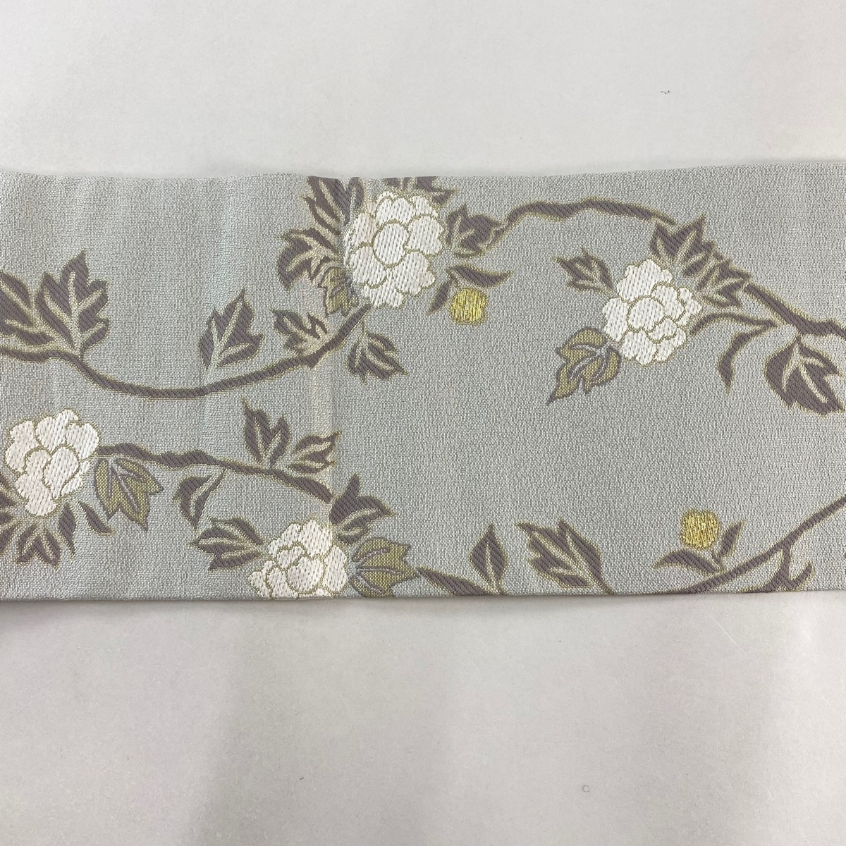 | 名古屋帯 逸品 牡丹 金糸 箔 灰色 正絹 【中古】 |