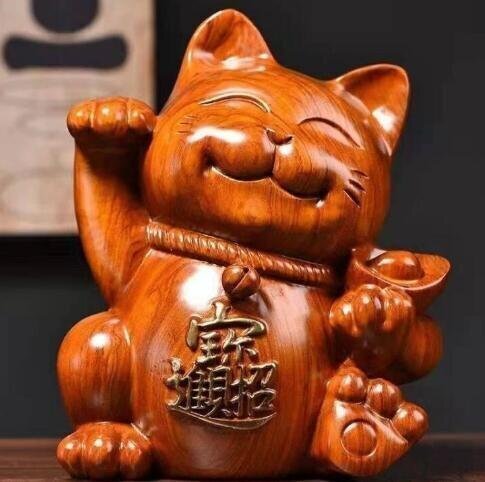 美品推薦 新作の花梨木彫 可愛い招き猫 玄関、客間の置物 招財