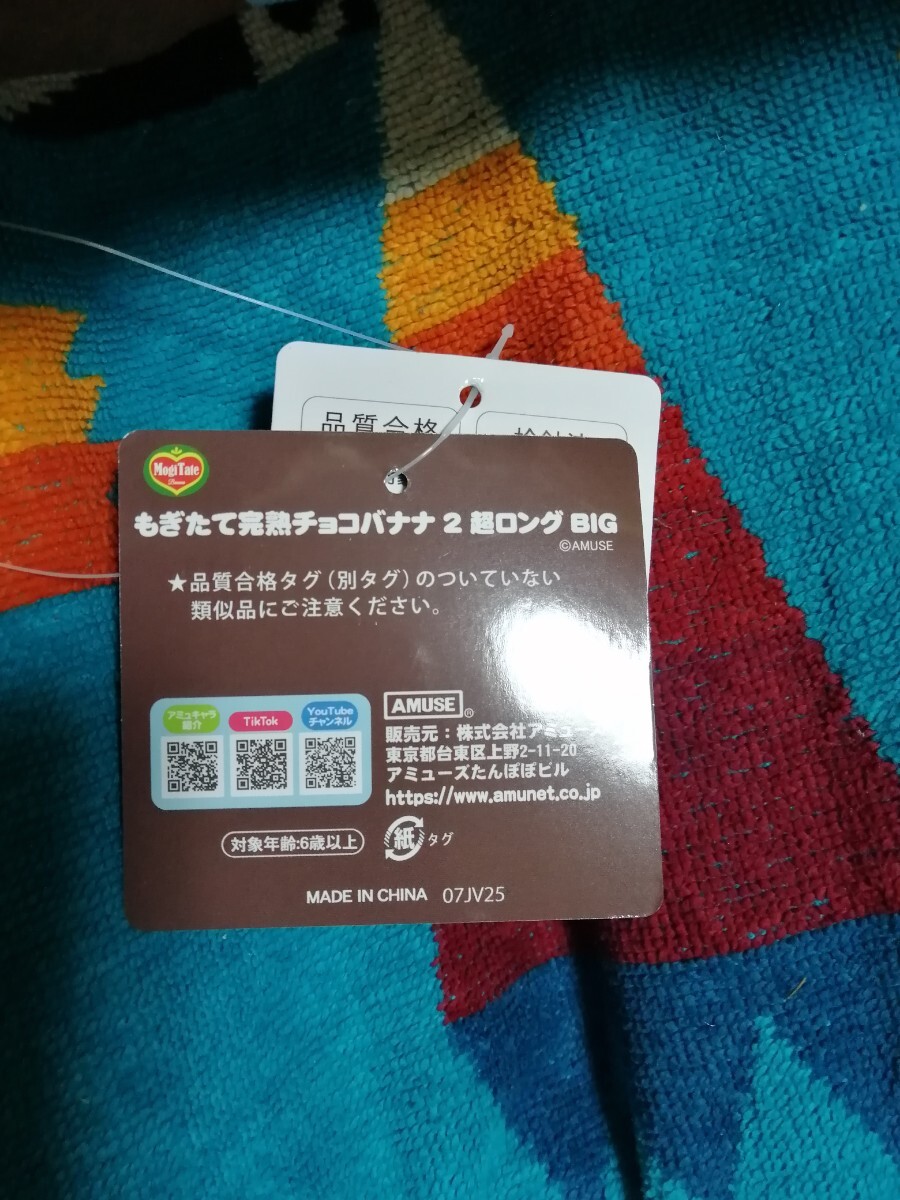 もぎたて完熟チョコバナナ2超ロングBIGのぬいぐるみです。