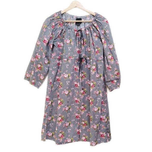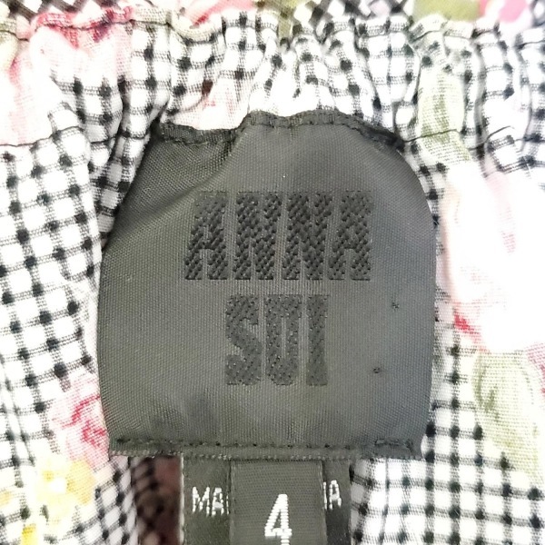 アナスイ ANNA SUI サイズ4 S - 黒×白×マルチ レディース 長袖/ひざ丈/花柄/チェック柄 ワンピース