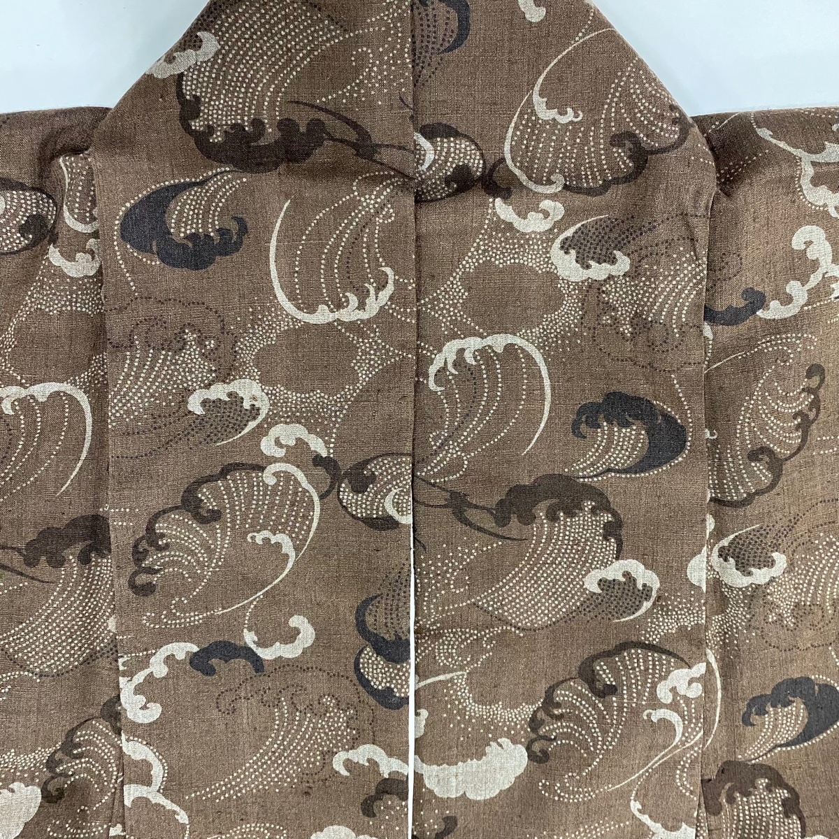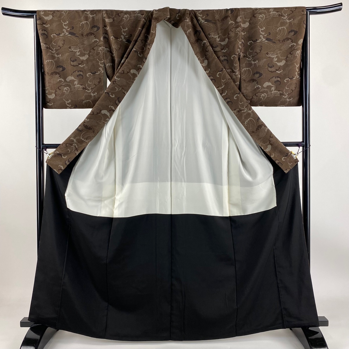 | 小紋 美品 名品 落款 証紙 紬地 やまと 波頭 焦茶色 袷 身丈164.5 裄丈65 M 正絹 【中古】 |