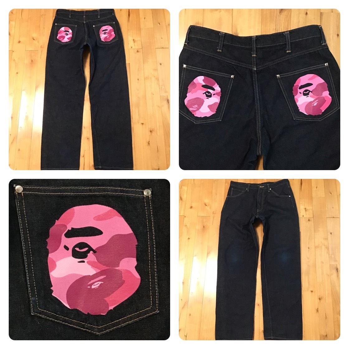 a bathing ape ★青山限定★ Pink camo APE HEAD デニムパンツ Lサイズ です★