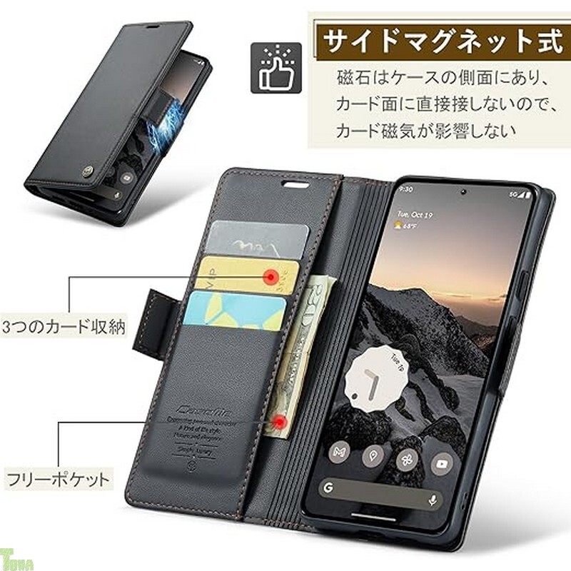 ブラック 手帳型 シンプル RFID機能付き PU + TPU ピクセル Google Pixel 10 / 10 Pro 保護 財布型 スタンド機能 カード収納 ケース カバー