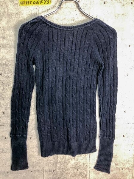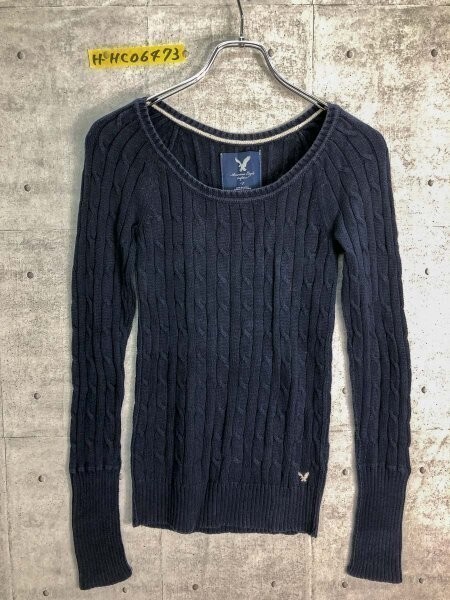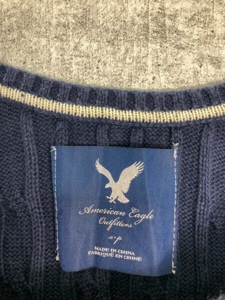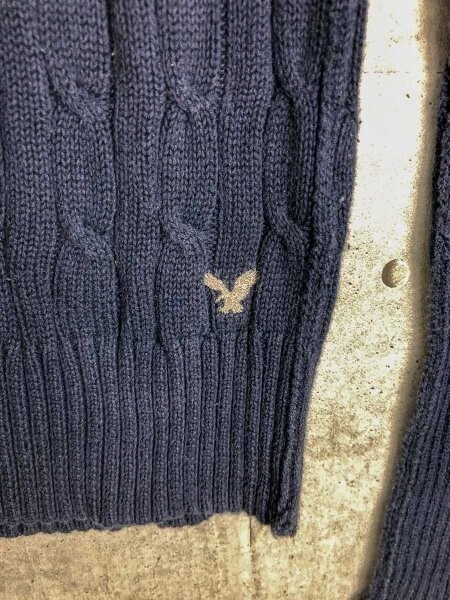 AMERICAN EAGLE アメリカンイーグル レディース ラグラン ワンポイント刺繍 ケーブルコットンニットソー S ネイビー