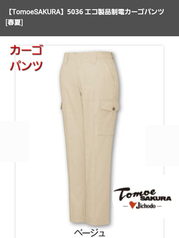 5175 自重堂 5036|エコ製品制電カーゴパンツ|ベージュ|W85㎝|春夏|Tomoe SAKURA|新品未使用|帯電防止|綿ポリ混紡|作業ズボン|制電