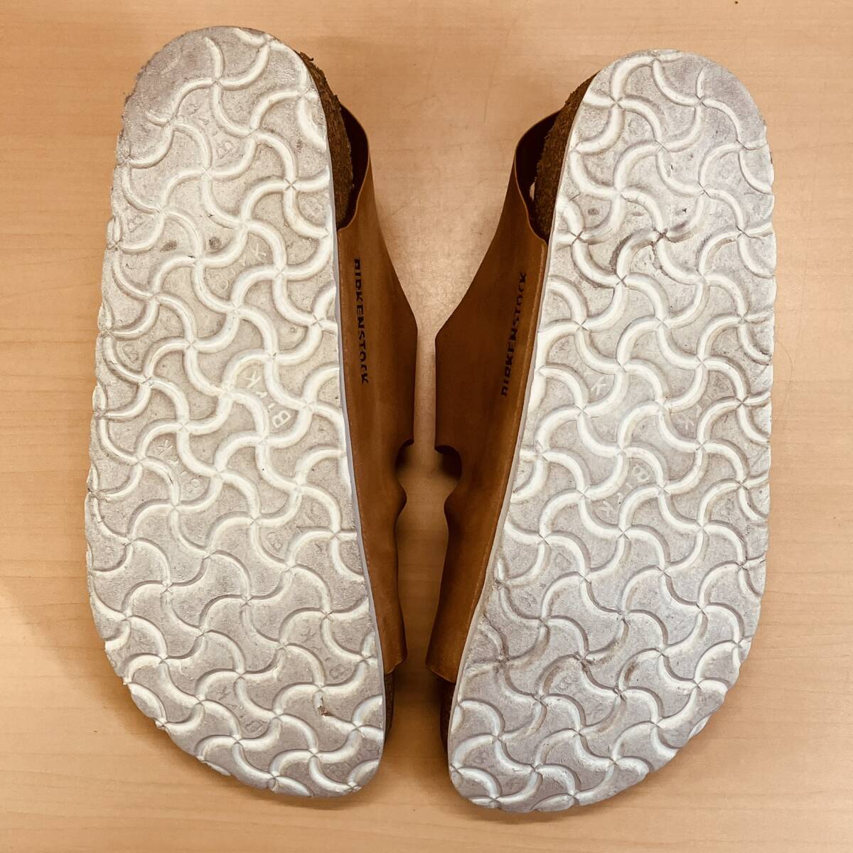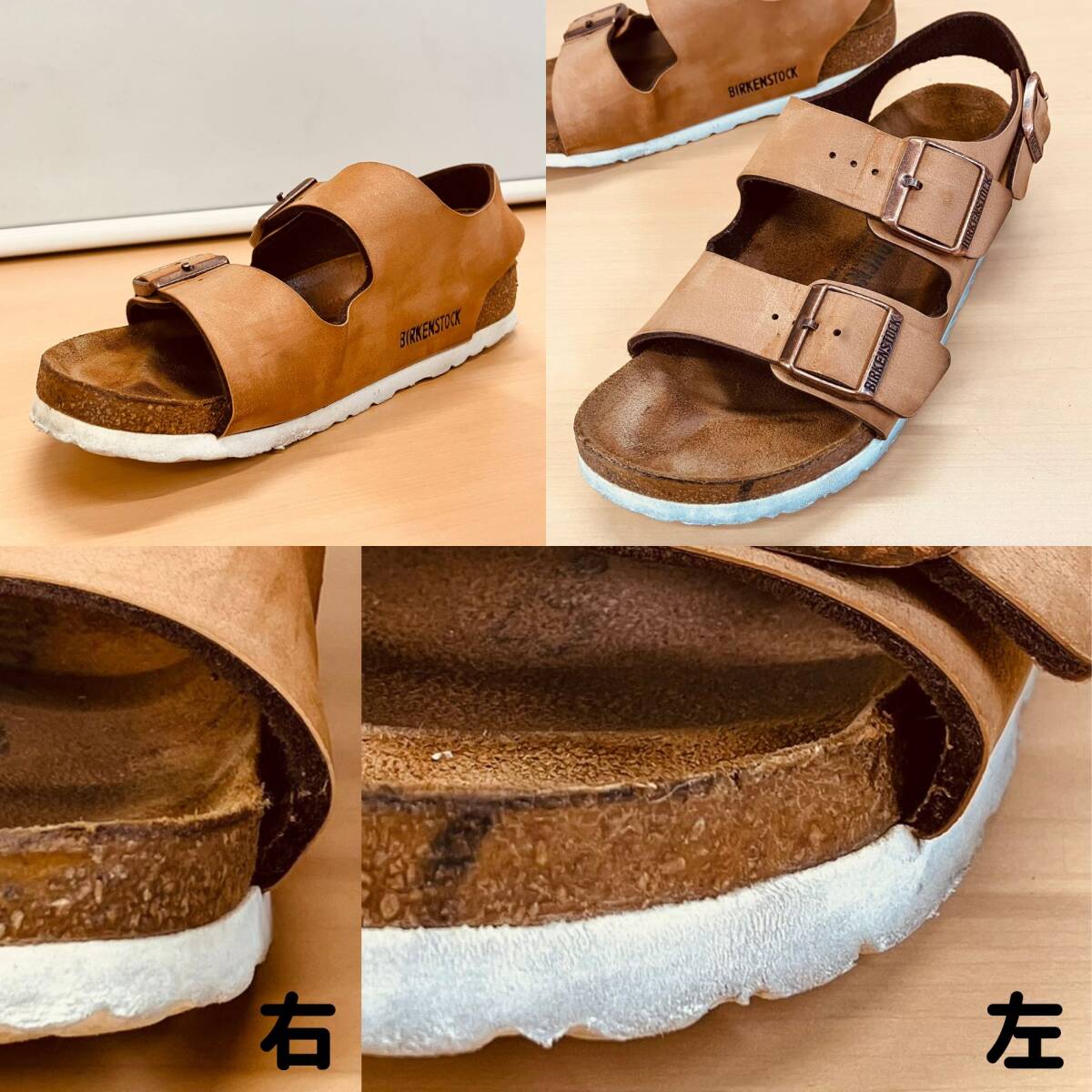 アッパーとコルクフットベッド側面の接着がフロント側からやや剥がれかけてきています。