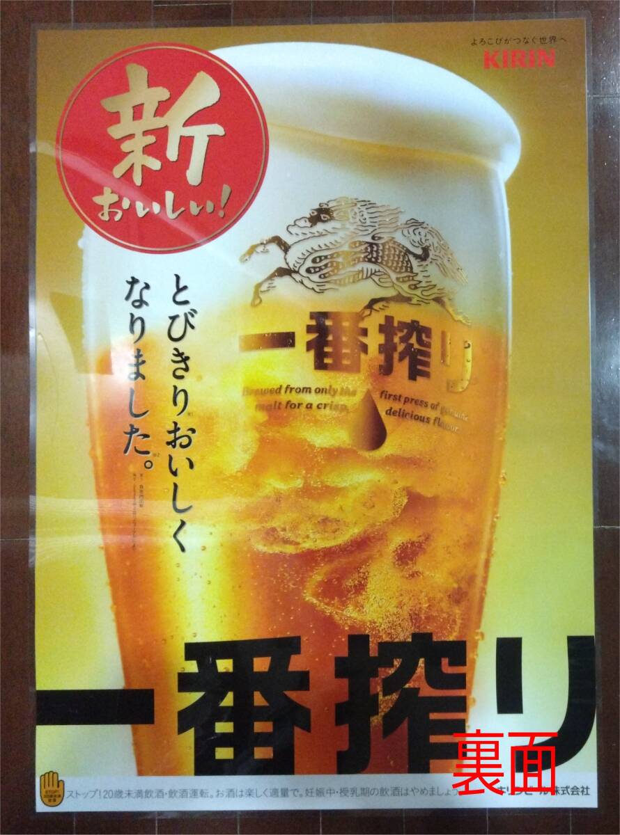 飲食店用の非売品ポスターです。最初からラミネート加工されていますので、紙の部分は保護されている状態です。
