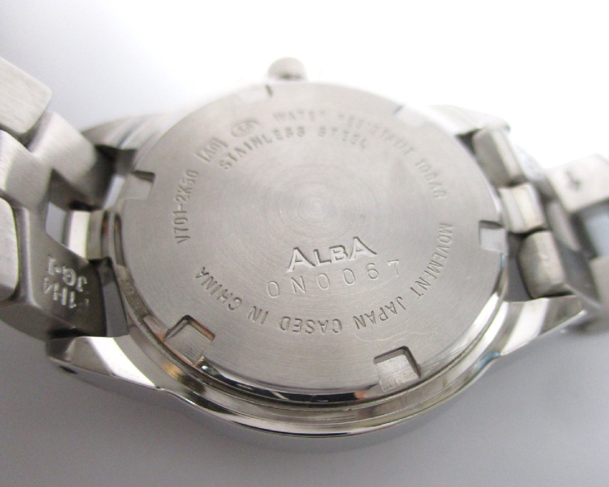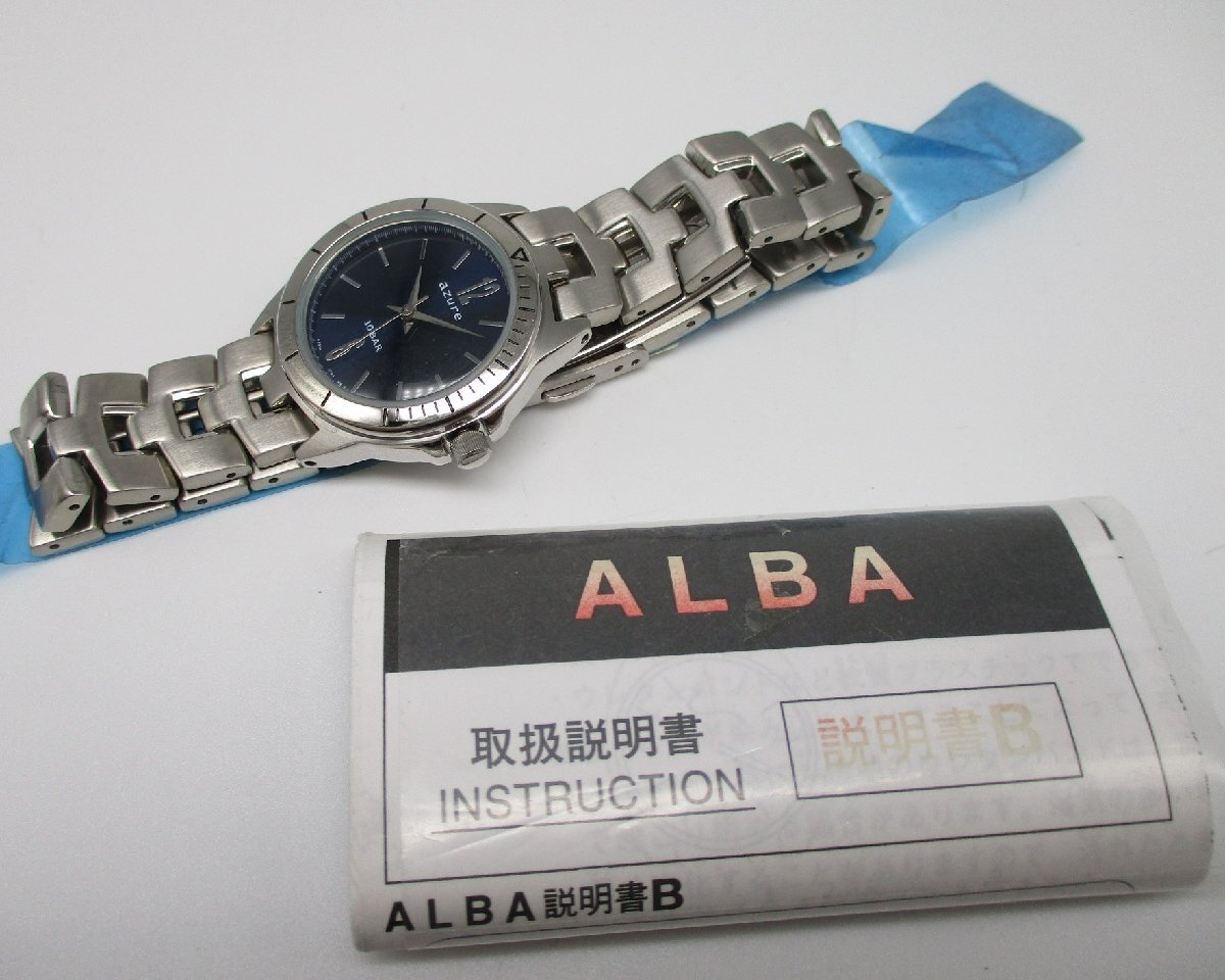 商品詳細 SEIKO セイコー アルバ azure アジュレ レディース・クォーツ・SS・10気圧防水仕様 【型式番号】V701-2K50 【およそのサイズ】ケース幅:28.3mm 腕回り:18cm 【状態】未使用・・・長期在庫品 クォーツ時計の入っている電池はモニター電池扱いでお願いいたします。発送までに止まった場合は電池交換後、発送いたしますが、その後の電池切れの際は、落札者様御自身でメーカーもしくは一般店に電池交換にお出しください。 【付属品】取扱注意書(退色等有) | ||||