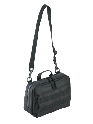 システムに対応したサブポケットやアクセサリーを、バッグ前面の帯(ウェビング)やお手持ちのウエストバッグやパンツのベルトに交互に編み込むことでより強く固定でき、多彩なカスタマイズが可能です。