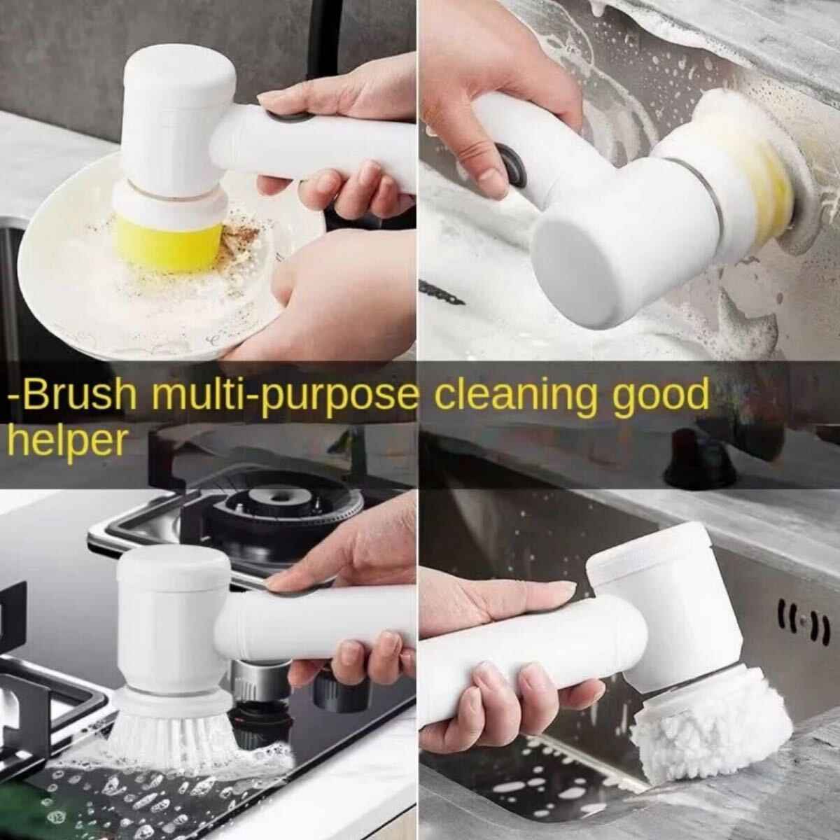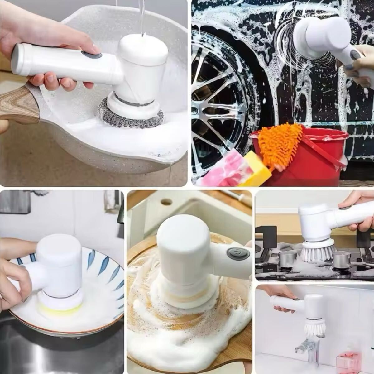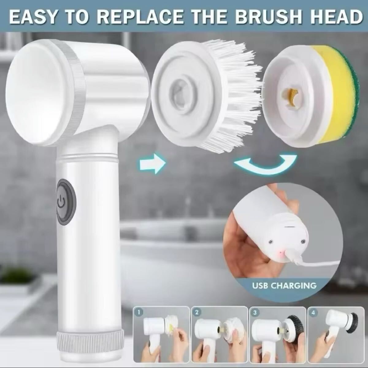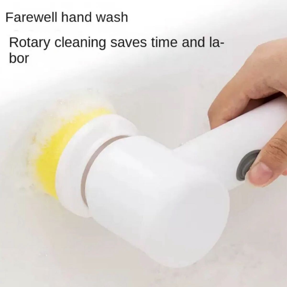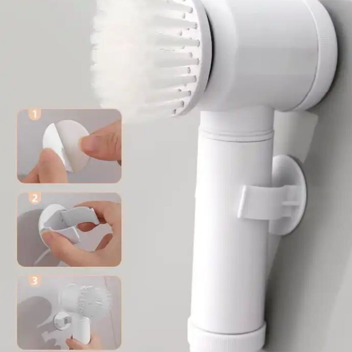 電動クリーニングブラシはボタン1つで稼働、360度回転して掃除します。