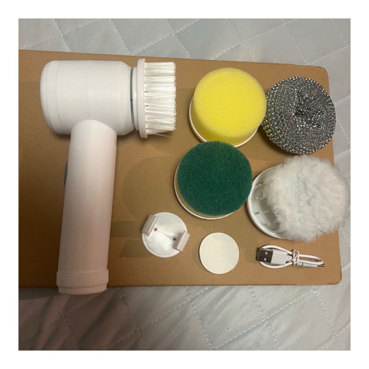 アタッチメント(ブラシ、スポンジ等)5種、コード、フック付きです。
