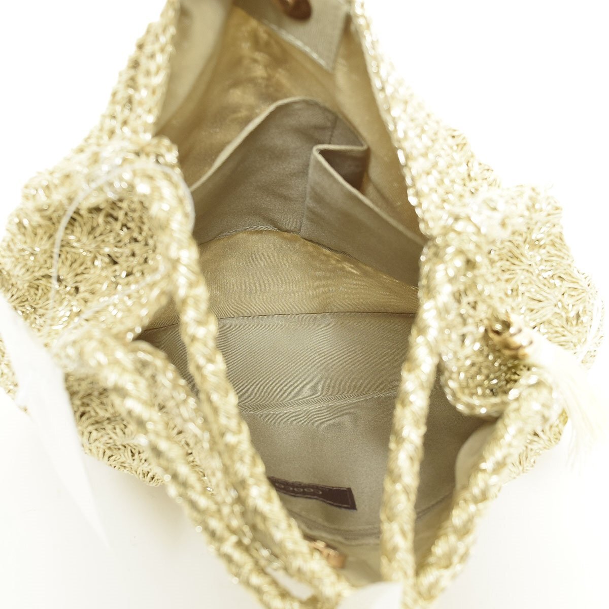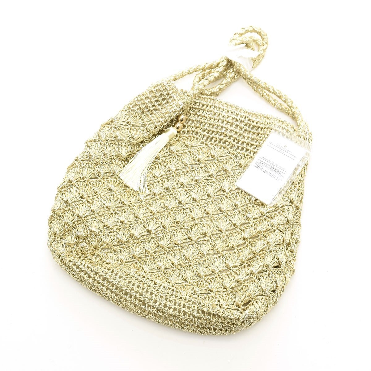 ◇560257 未使用品 COOCO クーコ 2WAYトートバッグ ショルダーバッグ メタリック柄編みロングハンドル 24131-12010 レディース ゴールド