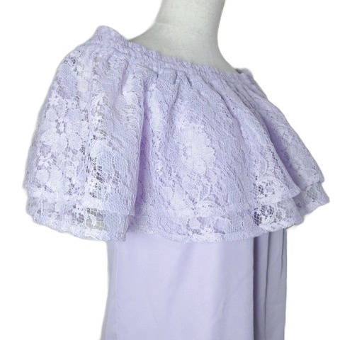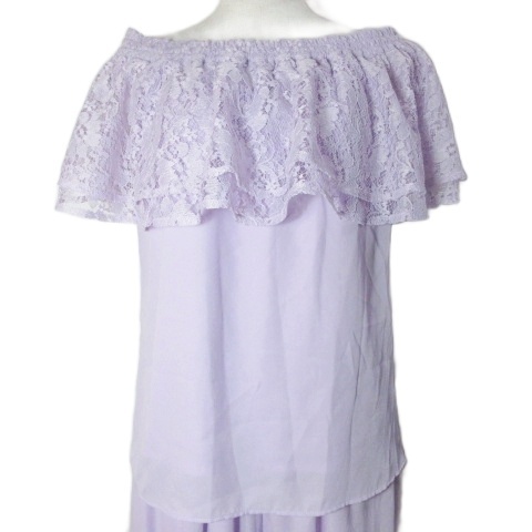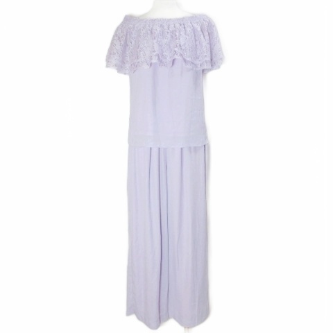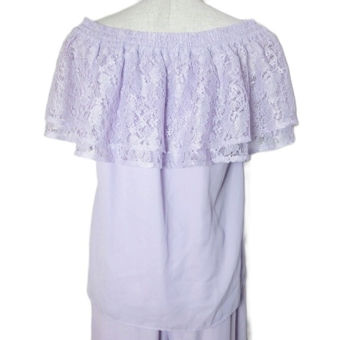 ガール Girl 美品 3Dフラワー刺繍2wayシフォンブラウス ワイドパンツ セットアップ レース オフショルダー S ラベンダー X レディース