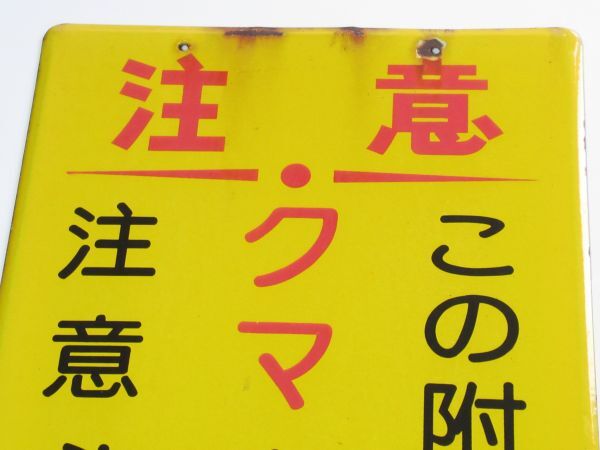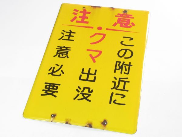 昭和時代 ホーロー看板「 熊出没注意 この附近にクマ出没 注意必要 」昭和レトロ 営林署 古民家 雑貨 インテリア アンティーク ガレージ