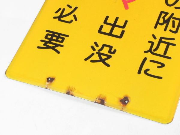 ・昭和時代 ホーロー看板「 この附近にクマ出没 注意必要熊出没注意)看板 」× 1個