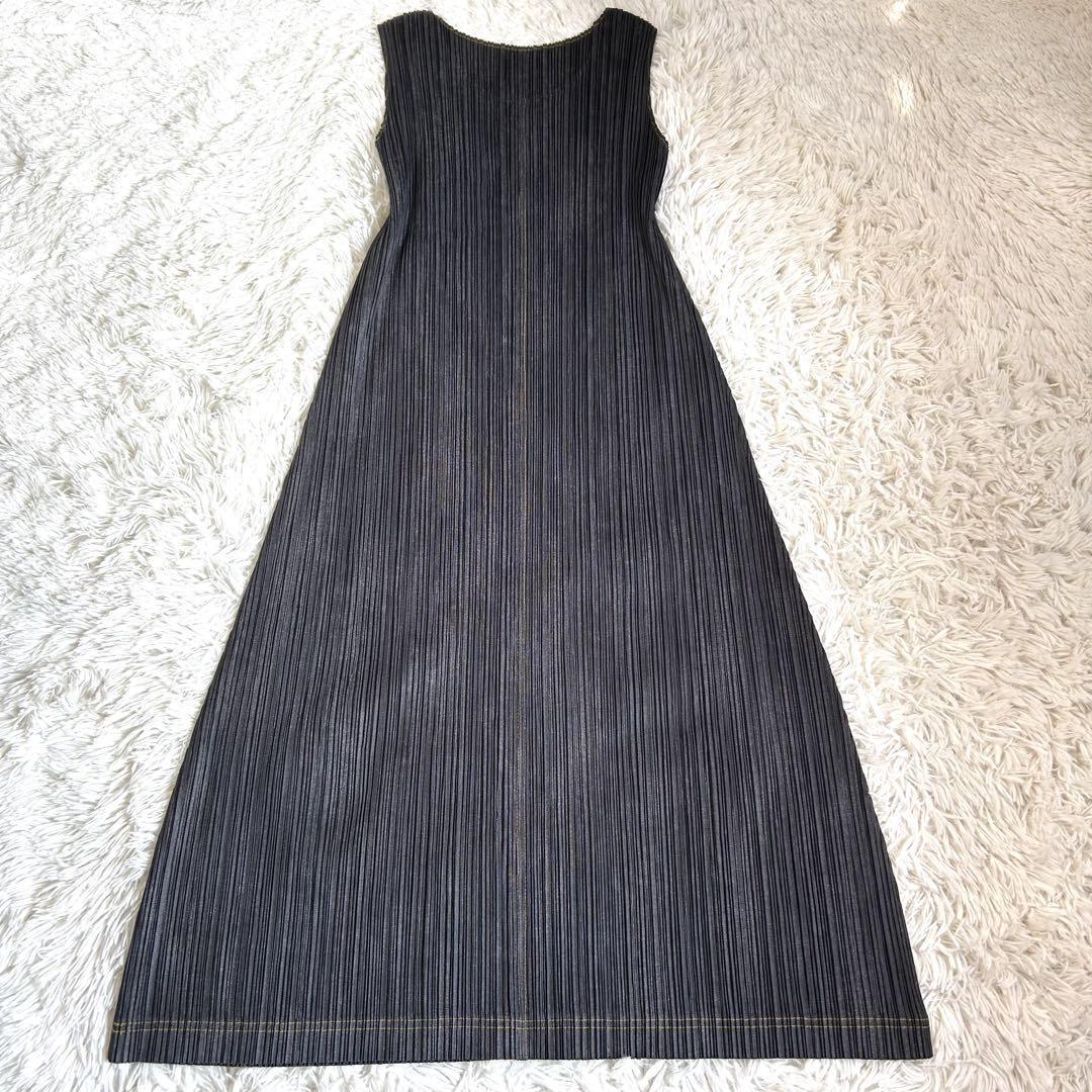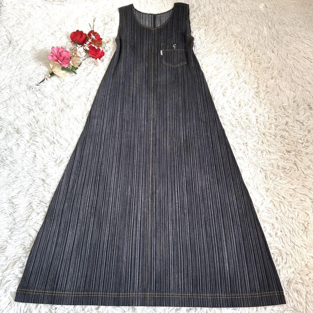 プリーツプリーズでも非常に人気の高いデニム転写シリーズのマキシ丈ワンピースです