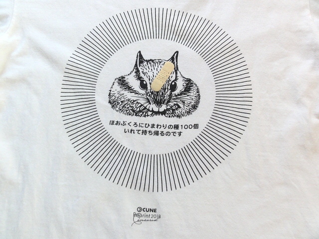 CUNE キューン ひまわりの種を頬張るリス Tシャツ L 白