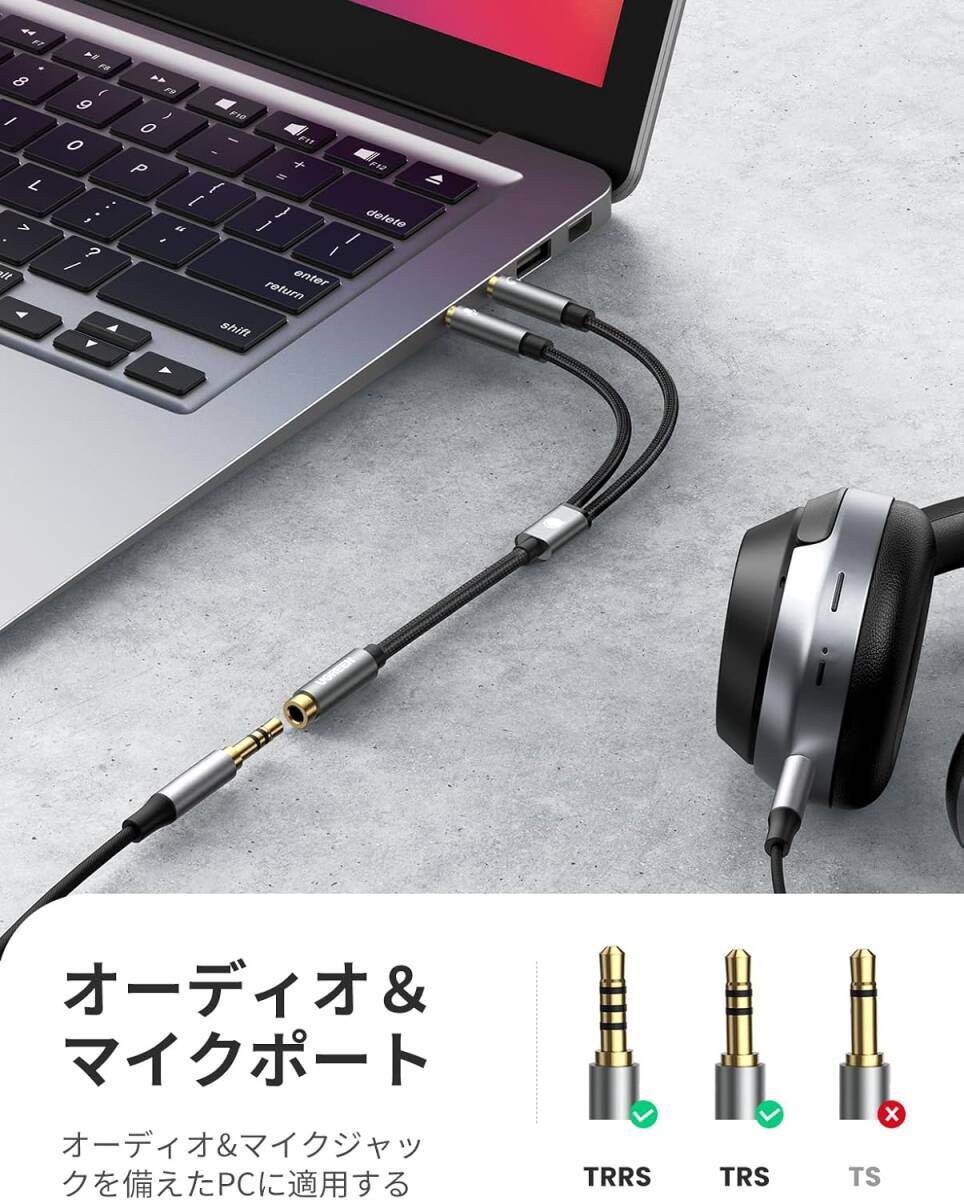 UGREEN 3.5mm 変換ケーブル / 4極 [メス] ー 3極 [オス](マイク&オーディオ)