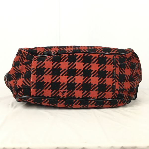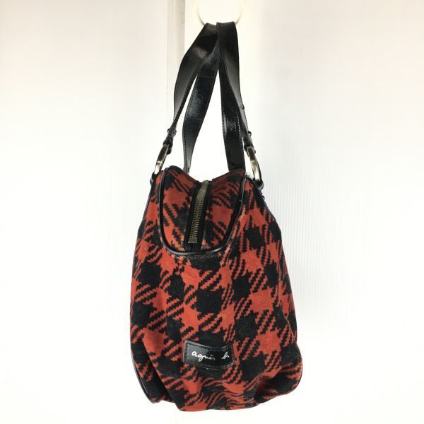 agnes b/アニエスベー ミニボストン/ハンドバッグ 赤×黒/チェック柄 布製 レディース 管NO.xB15-36