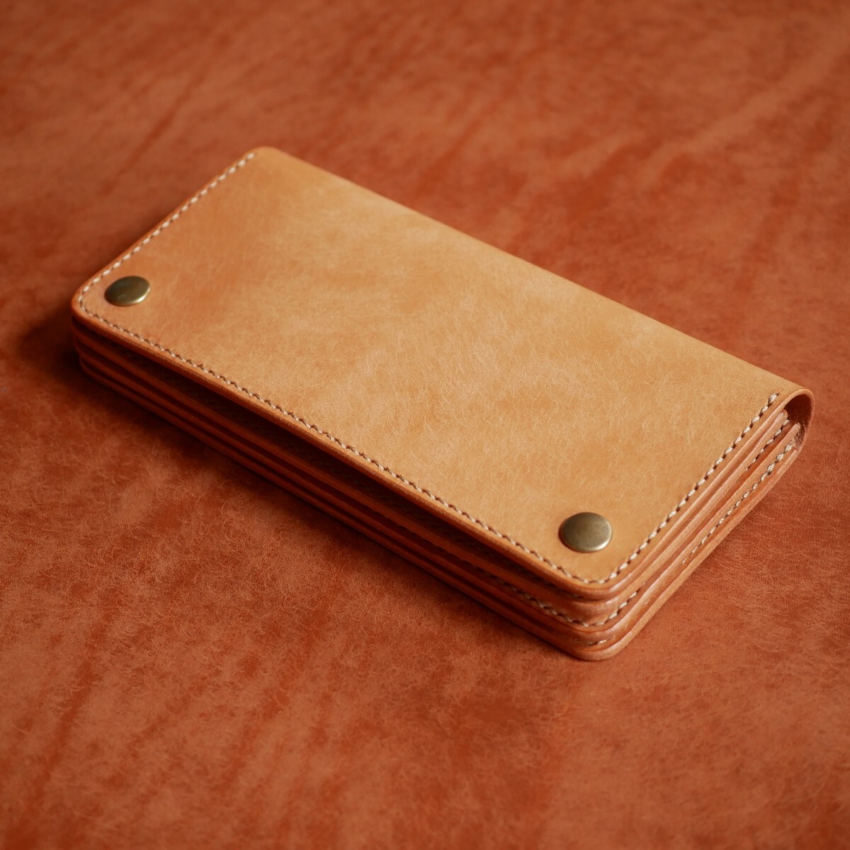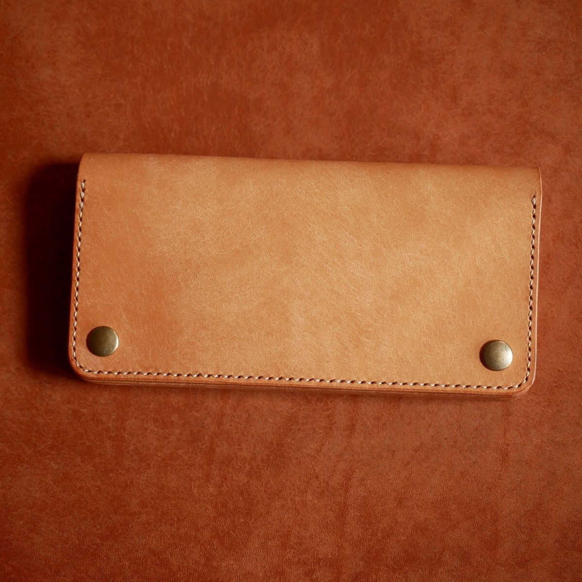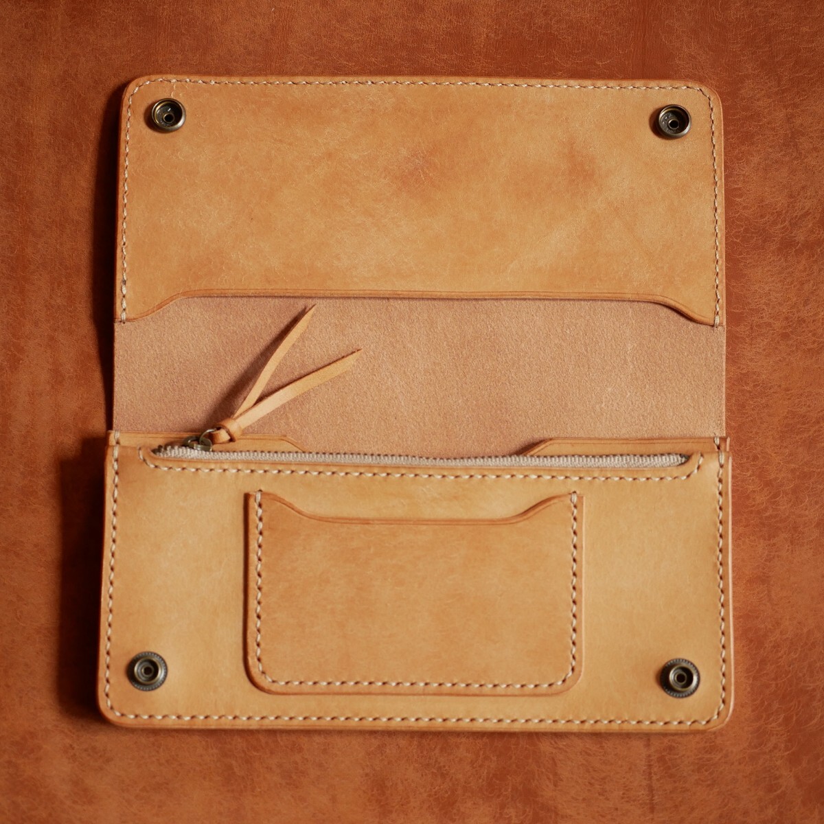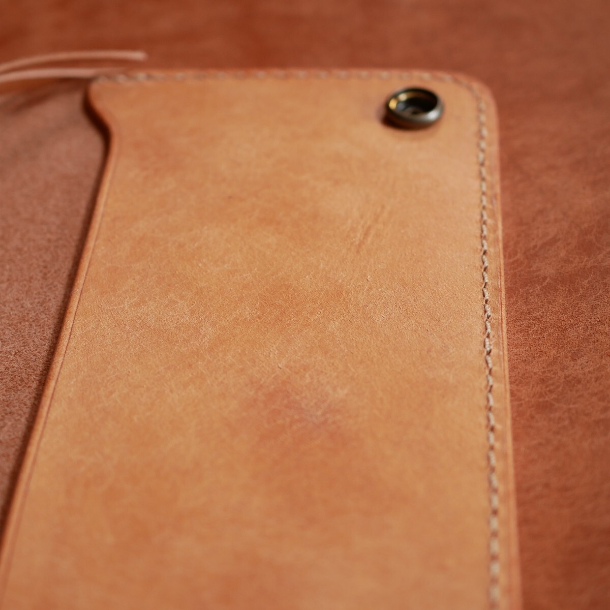 シンプルでスタンダードなデザインに、上質なイタリアンレザーを組み合わせたハンドメイドトラッカーウォレットになります。