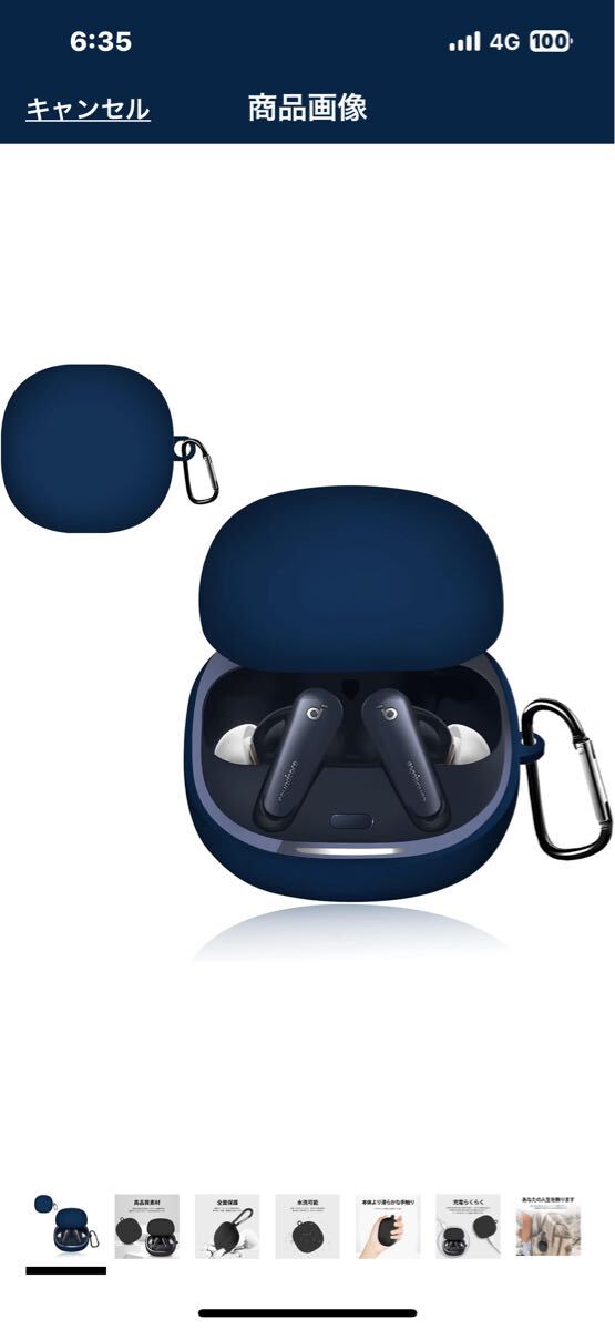 g290 anker soundcore liberty 4 ケース【カラビナ付き】 シリコン ケース 軽量 薄型 耐衝撃 滑り止め 落下防止 防塵 充電便利 (ブルー)